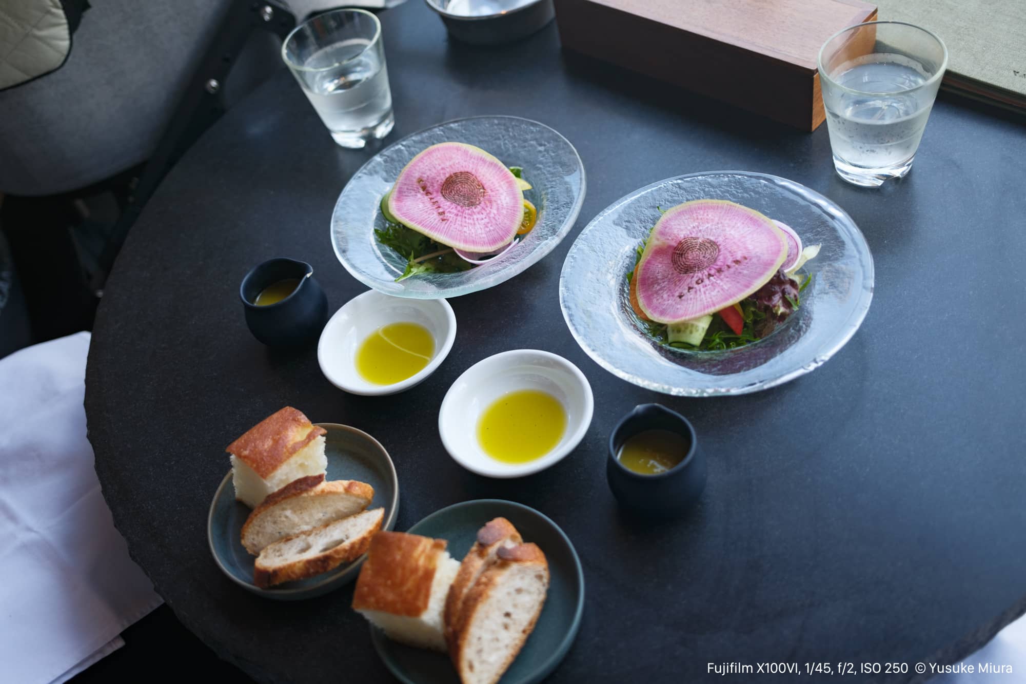 サラダのドレッシングは「軽井沢アカシアはちみつとレモンのヴィネグレット」と「ジンジャーヴィネグレット」から選ぶことができました。僕らは前者にしたのですが、ほんのりとはちみつの甘みがしてとても美味しかった。