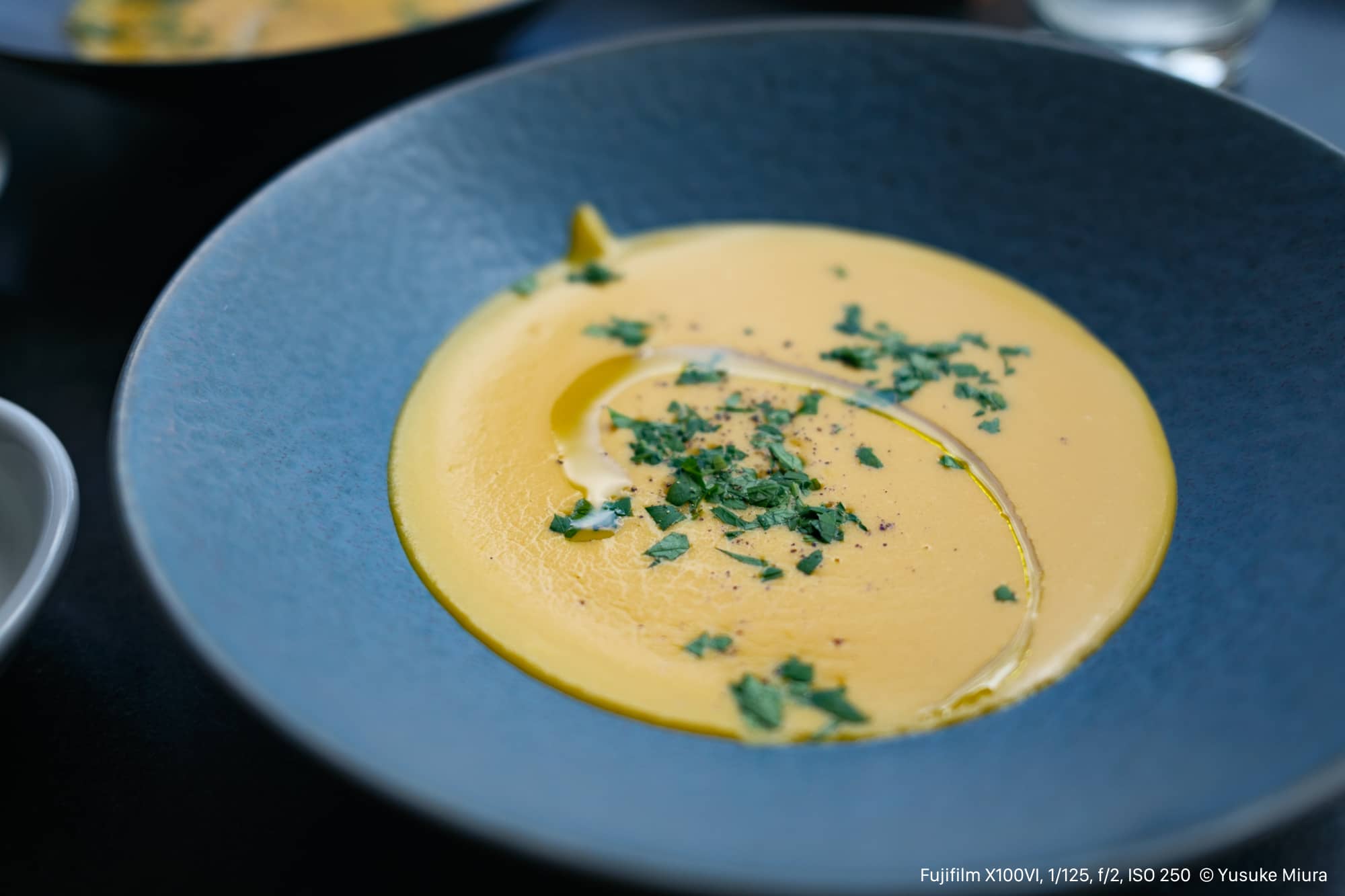 続いて「本日のスープ」。この日はかぼちゃのポタージュでしたが、かなり濃厚でとっても美味しかったです。語彙力足りなくて美味しかったしか言ってないですが、何杯でもおかわりしたかったくらい。