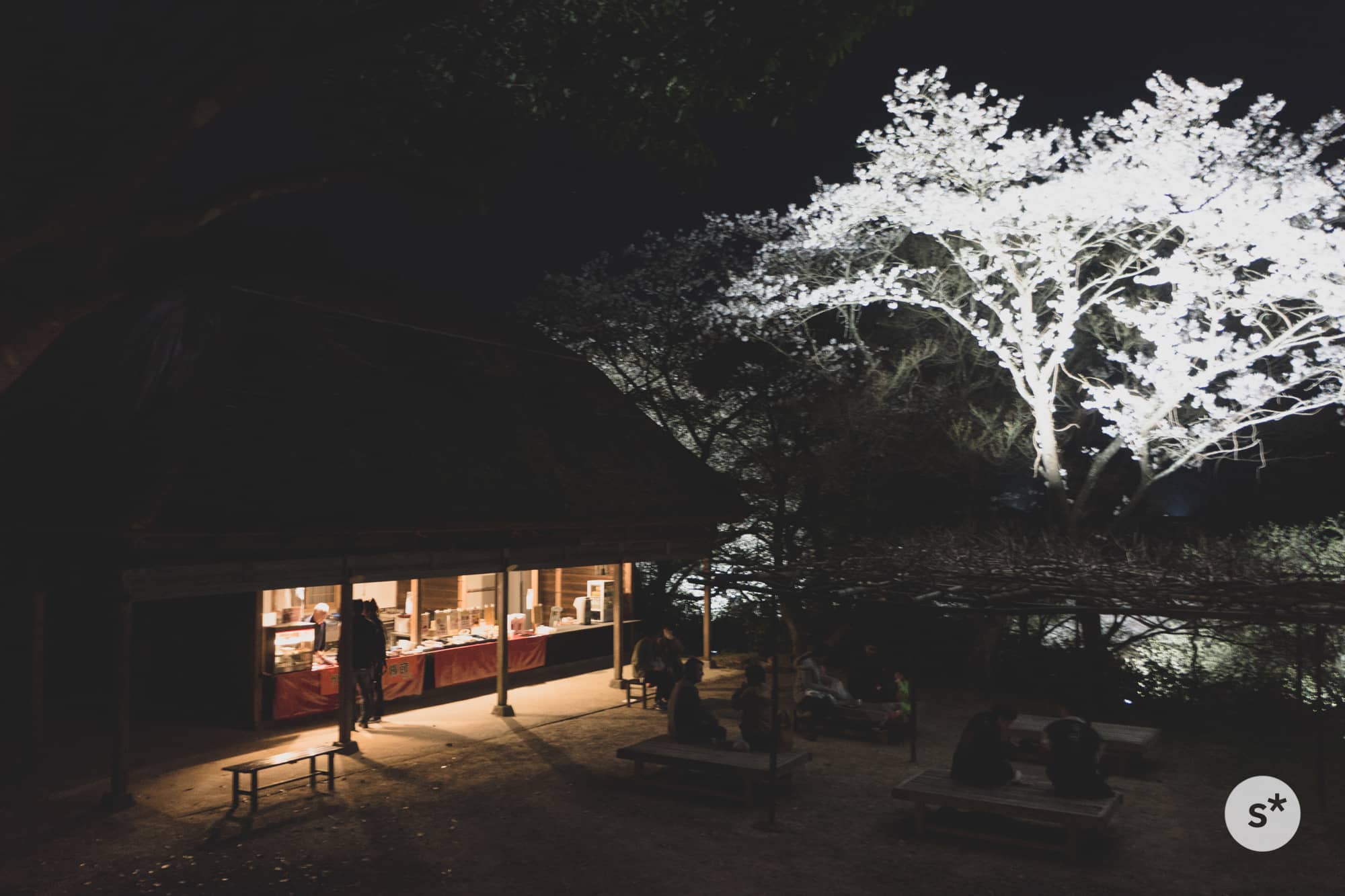 それから170年。平成となった今でもこの庭園はそのままの姿で残り、幻想的な夜桜を奏でるようになりました。