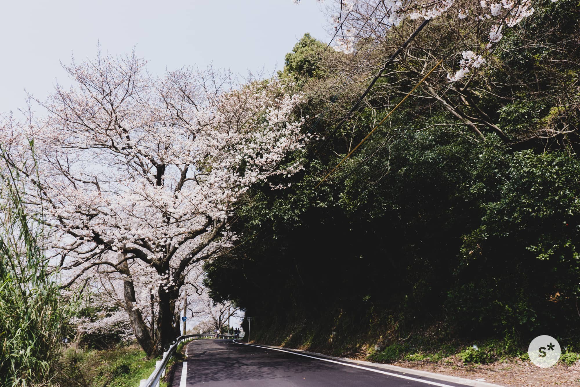 見どころは「海を一望できる場所に咲く桜」。地図からもわかるように、海沿いギリギリの道に桜のトンネルが続いています。