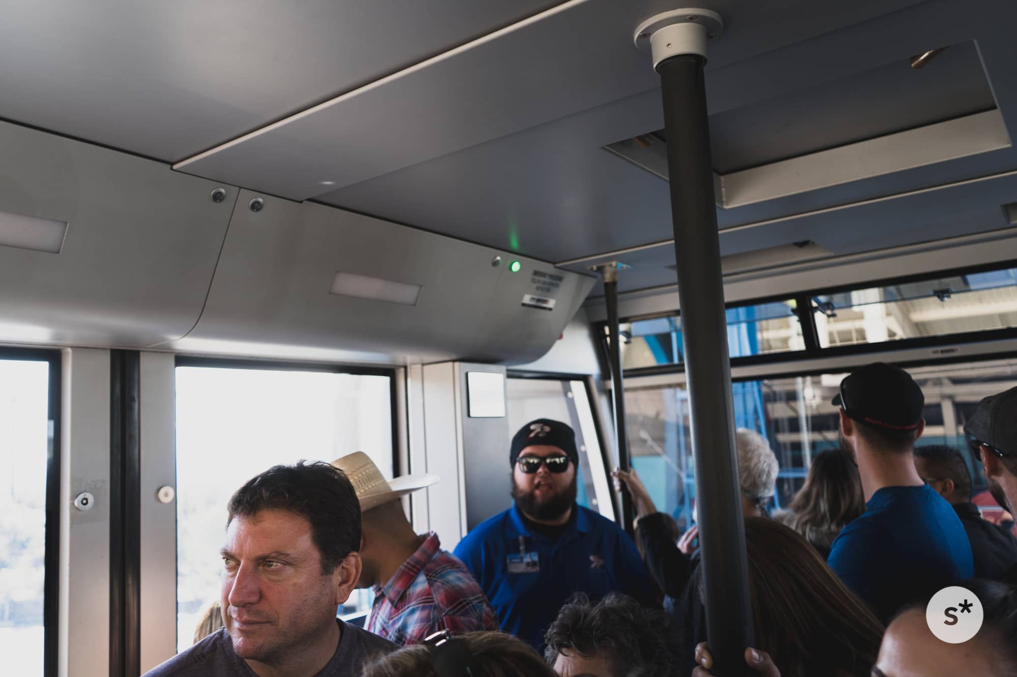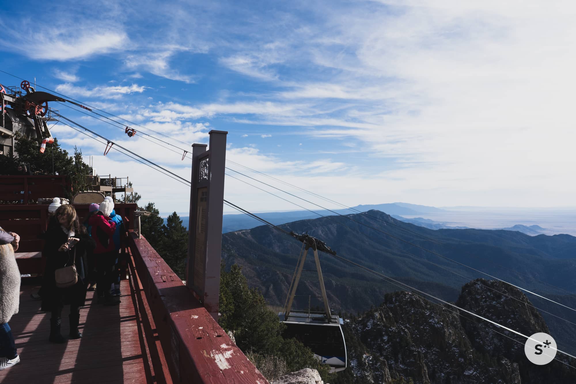 サンディア・ピークのトラムはだいたい15分くらいの間隔で運航されています。山頂までの所要時間が約15分なので、乗客を入れ替えて随時運航しているという感じ。