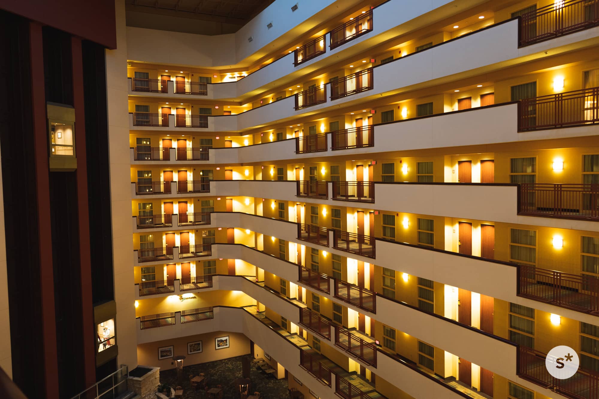 アルバカーキでは「Embassy Suites by Hilton」というホテルに滞在していました。このホテルがあるのは市内の中央部。