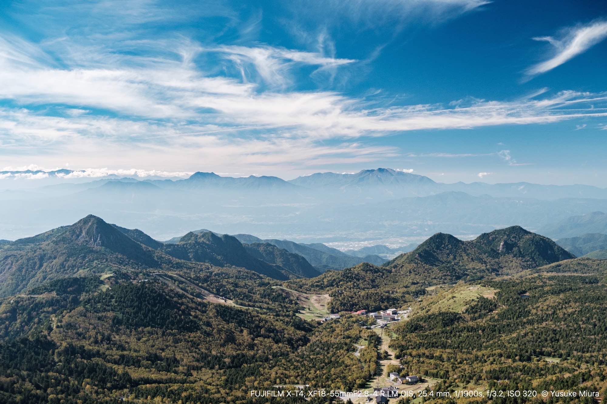 こんなに快晴の日に来ることができて本当によかった。ほんとは夕方のマジックアワーまで山頂にいることができればいいのですけどね、リフトの営業終了が早いのでそれは叶わなそう。もちろんドライブインに止めた車からだったら見ることができますが、帰りの関越の渋滞を想像するとそうもいきません。