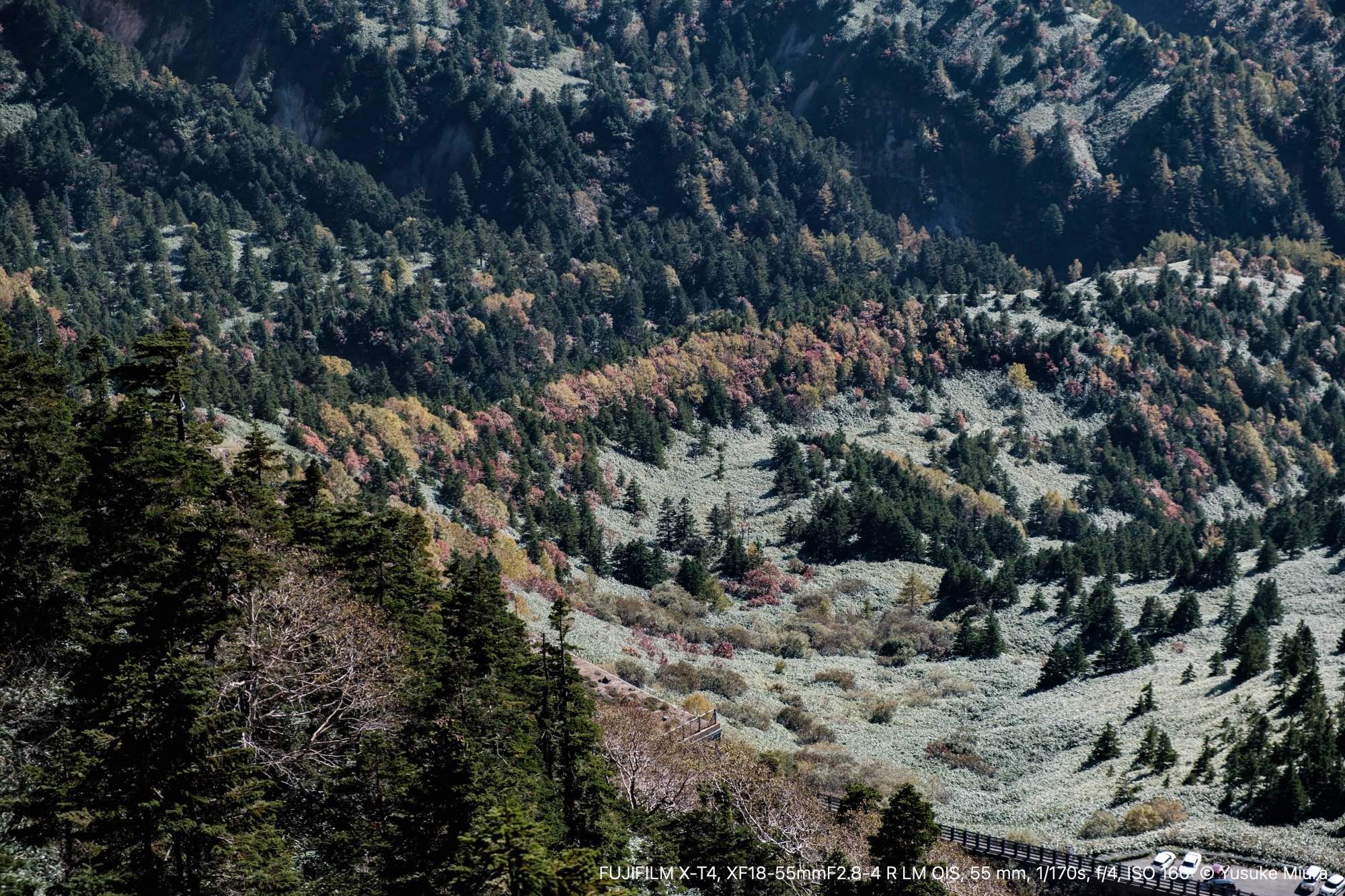 おそらくこの標高だと針葉樹が多いんだろうから、一面の紅葉にはならないはずです。だからこうしてまだらに色づくのが、志賀高原の紅葉なのでしょう。