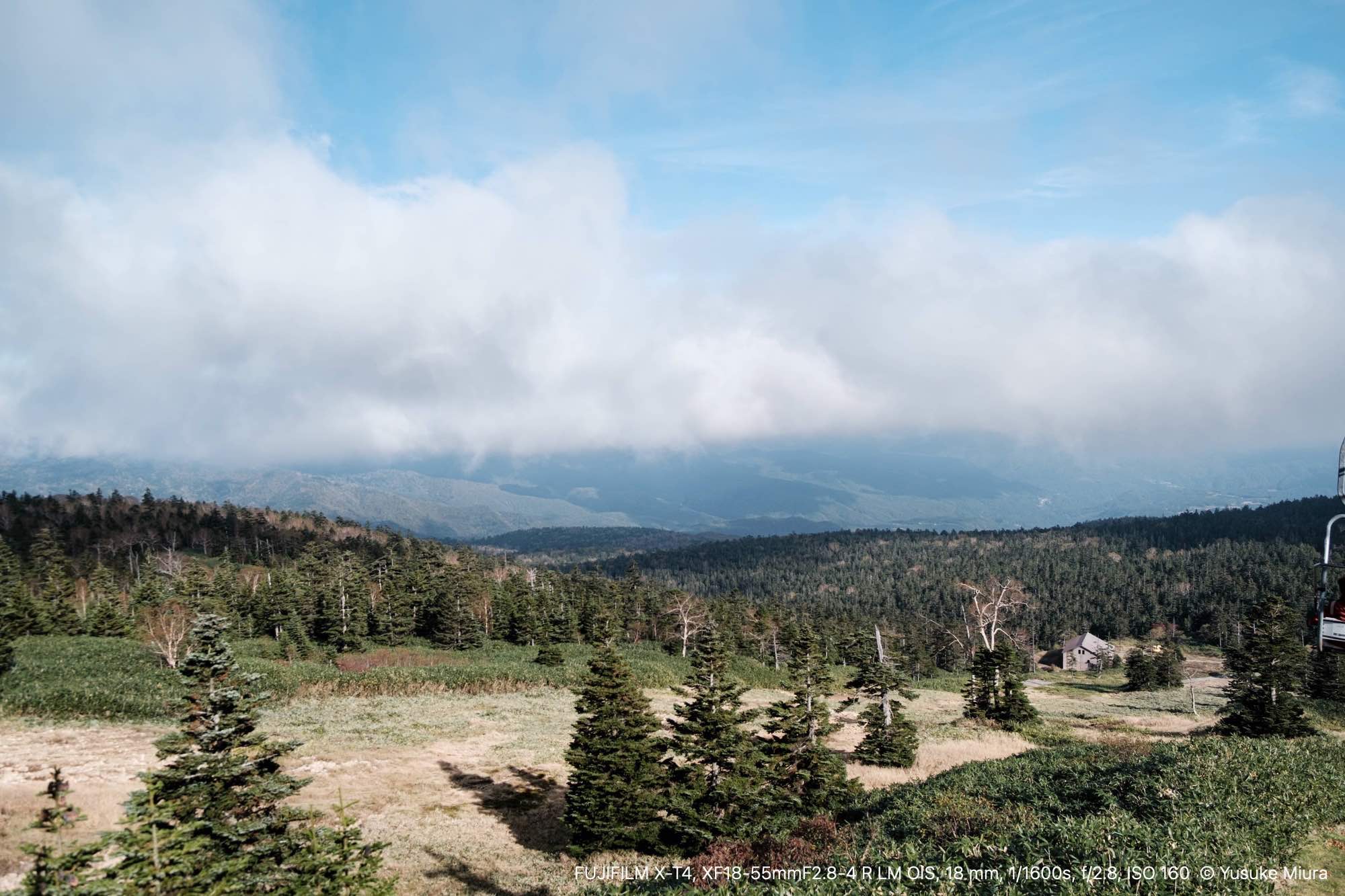 さて、横手山スカイレーターとリフトを乗り継いで、標高2,307mの山頂にやってきました。思っていたより寒くて、おそらく5〜6℃くらいだったんじゃないかな。凍えながら鼻水が出てくるのは久しぶりの経験でした。