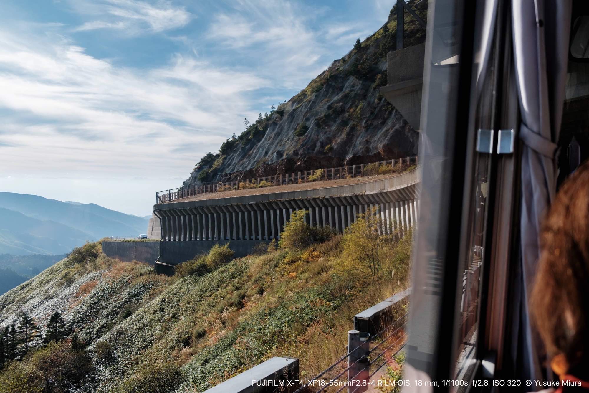 車高の高いバスからはいつもと違う目線で国道292号を見ることができ、無骨なスノーシェッド、崖下の景色、遠くに見える風景など、あらゆる風景が新鮮でした。特に僕はいつも運転しててあまり周りの景色を見ることができないから、余計にそう感じるのかもしれません。