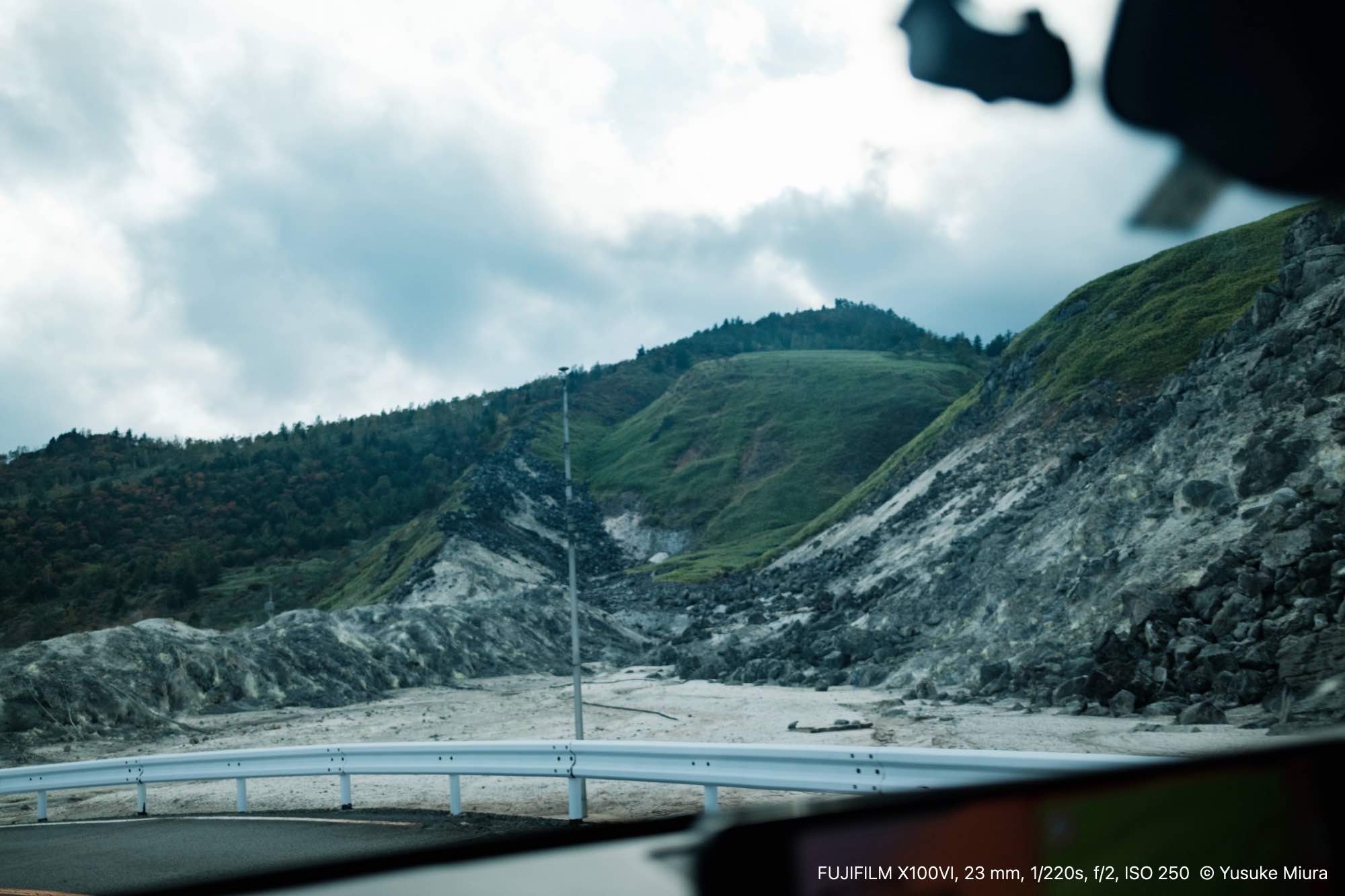 よくこんなところに道を通したもんだ。道の下から爆発して崩壊することはないのだろうか? どうやって維持管理しているのだろうか? いろんなことが気になります。