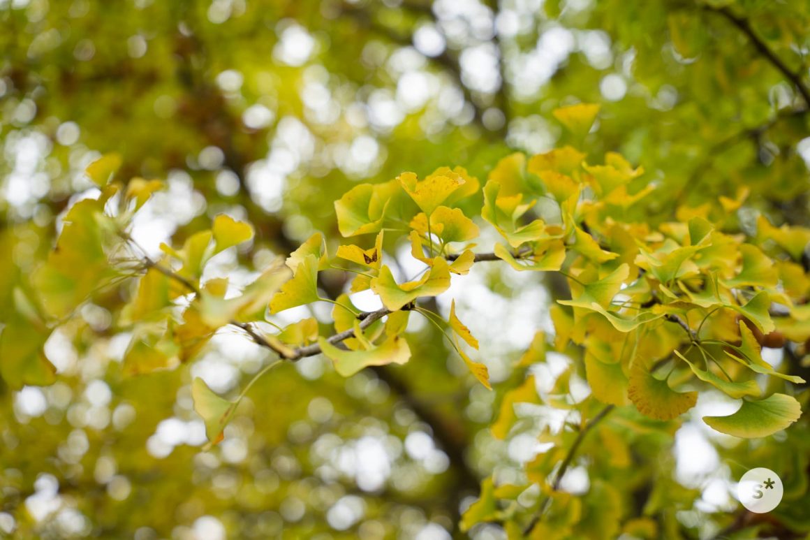 初めて知ったのですが、イチョウの葉は先端から徐々に黄色くなるんですね。緑→黄色に少しずつ、均一に変わっていくのだと思っていたので、少し意外でした。