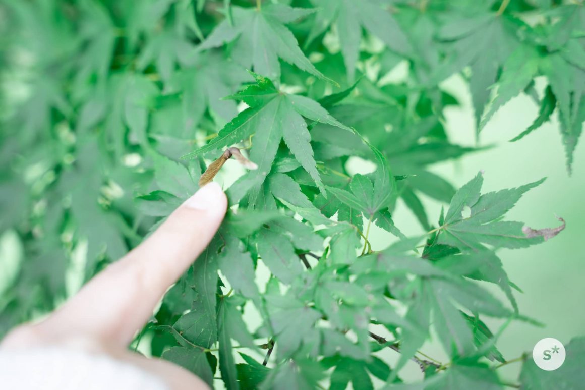 もみじの葉もまだ赤くなっていません。枝の先には種がついていました。