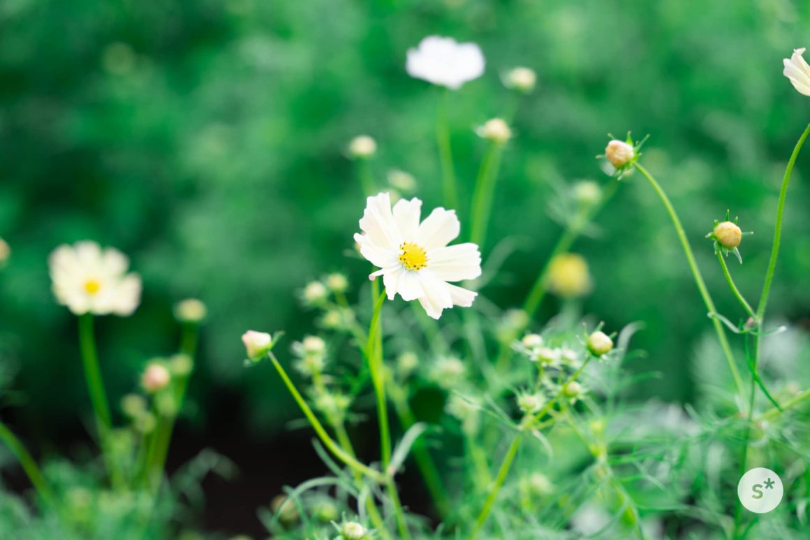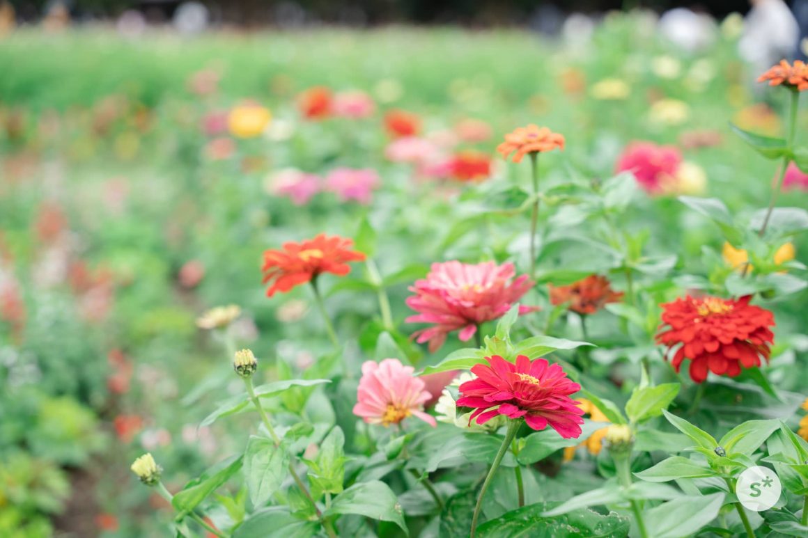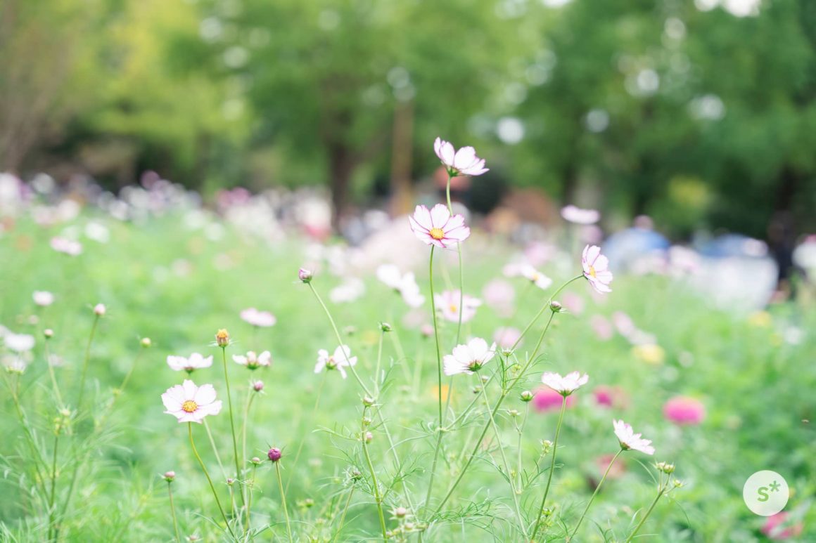 広場の周囲には花壇があります。咲き始めのコスモスを中心として、さまざまな花々が咲き誇っていました。