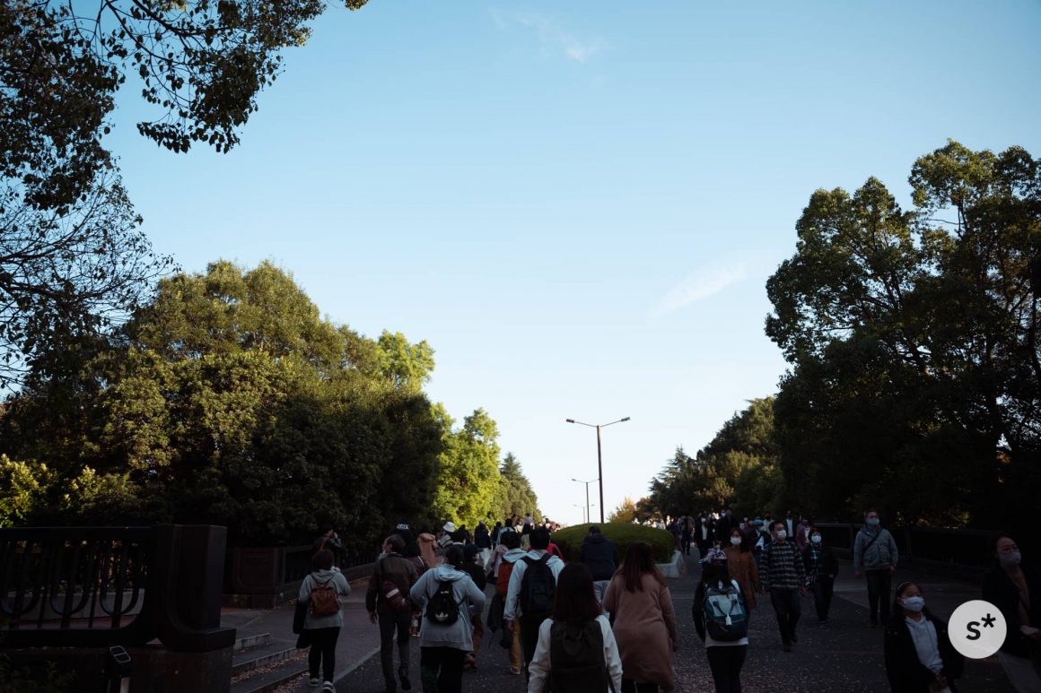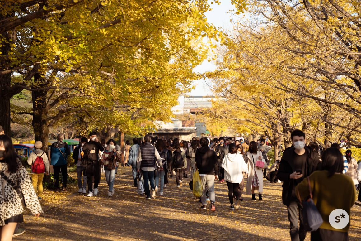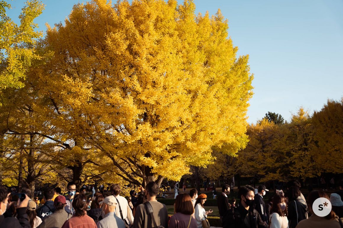 夜間開園エリア(日本庭園と、かたらいのイチョウ並木)以外は午後4時半に閉園するから、まずは立川口のイチョウ並木を見に行こう。ちょうど紅葉の見頃を迎えた休日だからか、人がとても多かった。昨年は平日に来たから少なかったのか。
