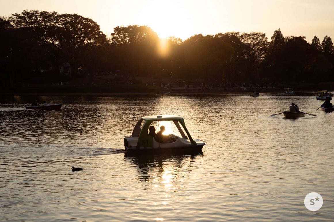 ゲートをくぐると、目の前には湖が広がっている。いくつものボートが(普通のボートも、スワンボートも)浮かんでいた。