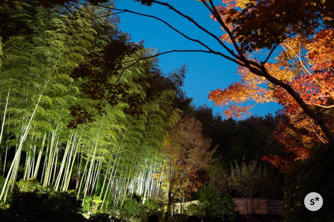 竹林ともみじのコントラストが綺麗だ。