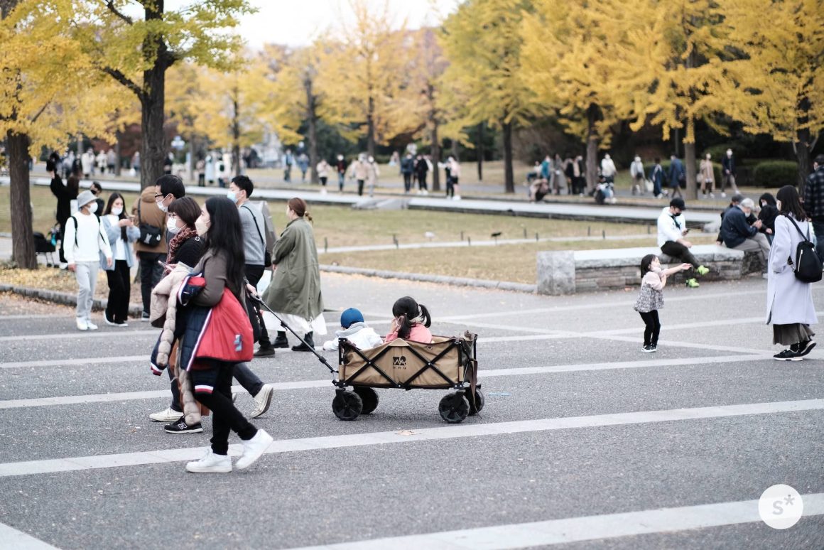 2時間ほど歩いて園内をぐるっと1周し、立川口に戻ってきました。まもなく閉園時間なので、多くの人々が出口を目指して歩いていました。