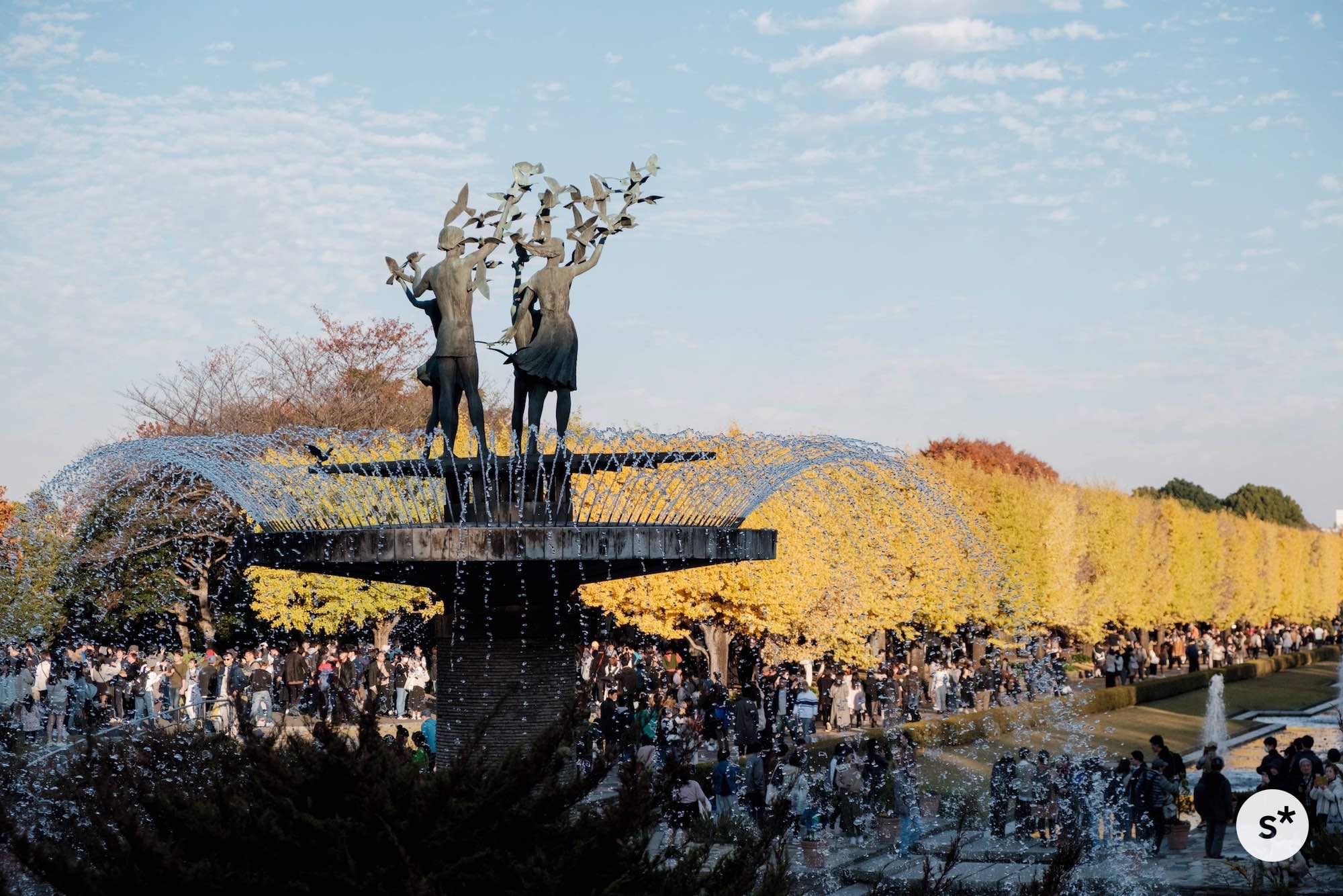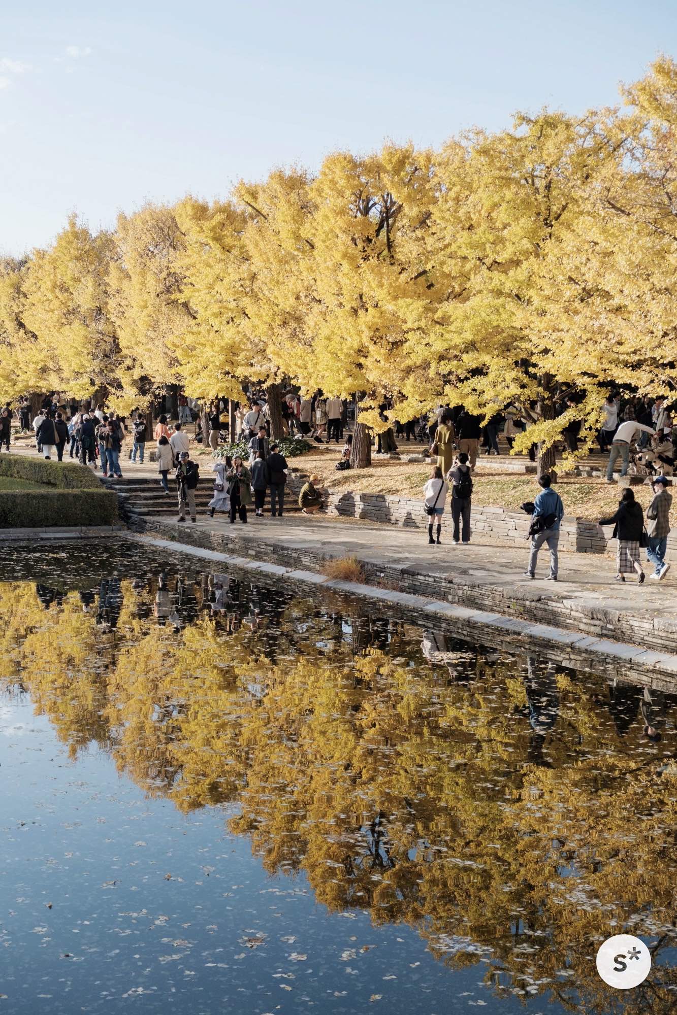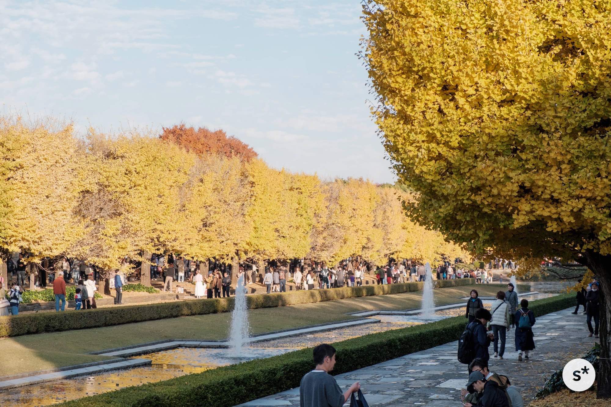 カナールとは造園用語で「細長い直線水路」を意味していて、全長200mの水路には大小5つの噴水があり、その両側には106本のイチョウがあるそうです。
