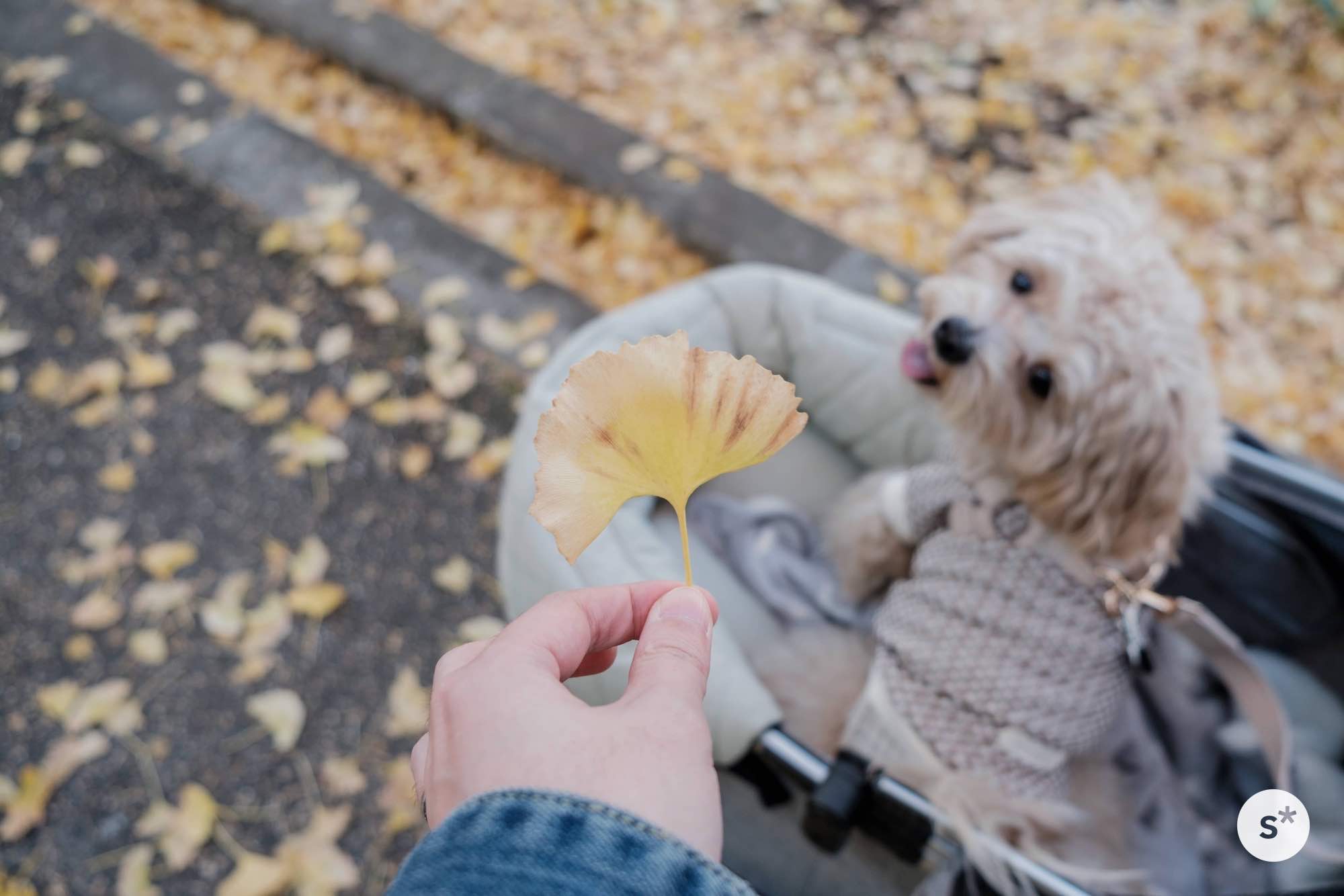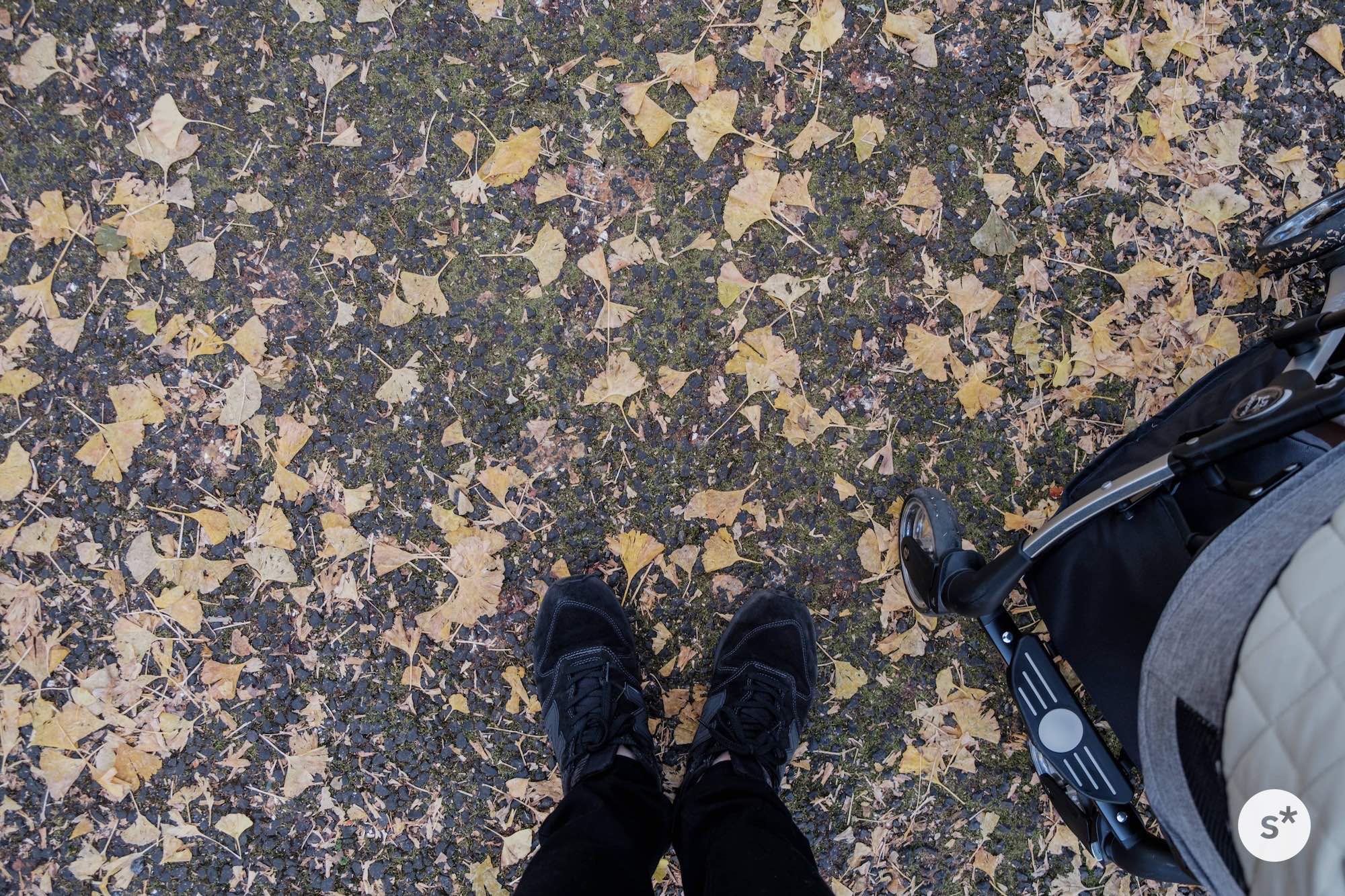 少しずつ進んでいきます。歩いていると黄色いイチョウの葉がカートの中に舞い降りてきて、秋が目の前にあることを感じさせます。