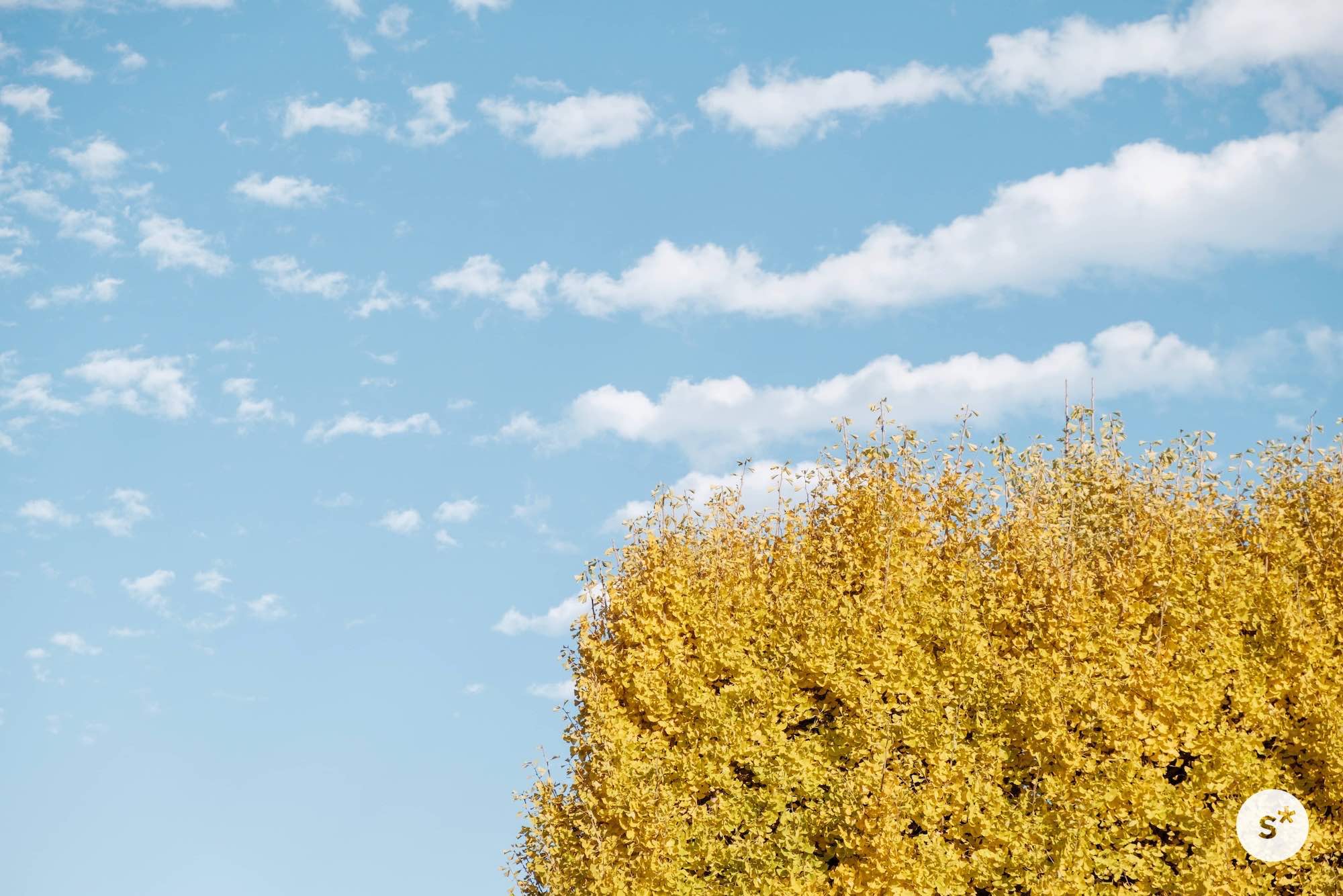 数年前、無慈悲に角刈りにされたイチョウの木は、だいぶ本来の姿に戻ってきているように思えました。まだ少し名残があるけどね。