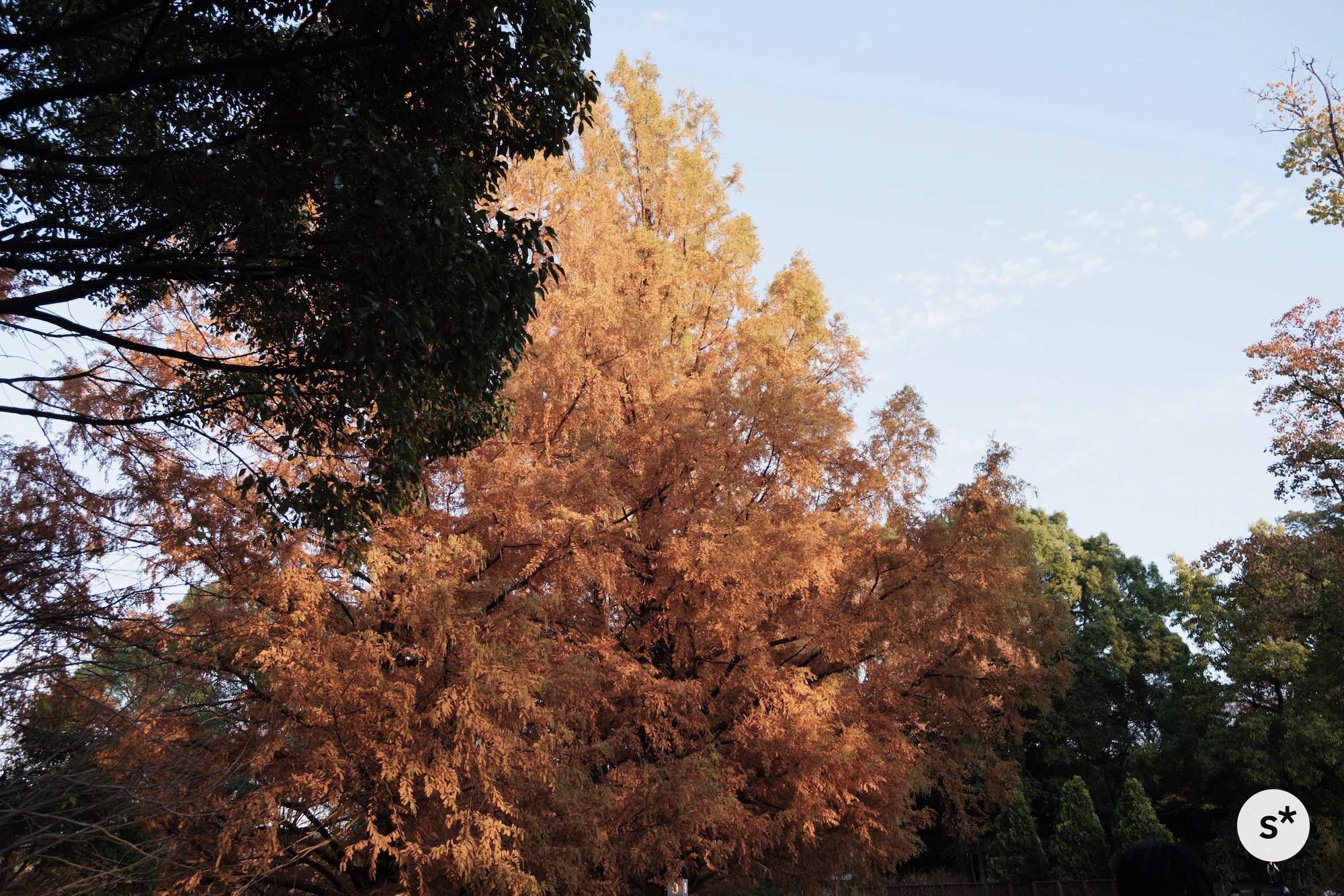 見渡す限り秋一色となっている園内。空気はひんやりしてきて、影は長くなり、年が暮れていくことさえも感じさせます。この時期の雰囲気が大好きなんだ…!