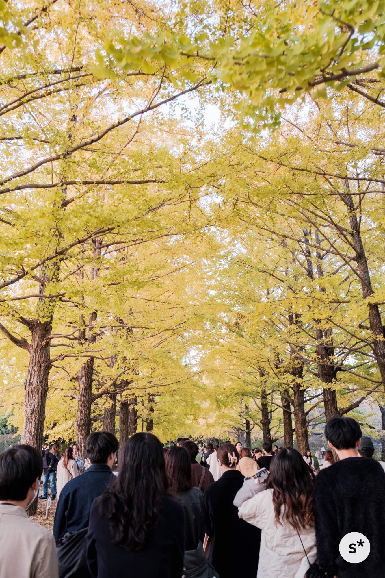 いよいよイチョウ並木に入っていきます。