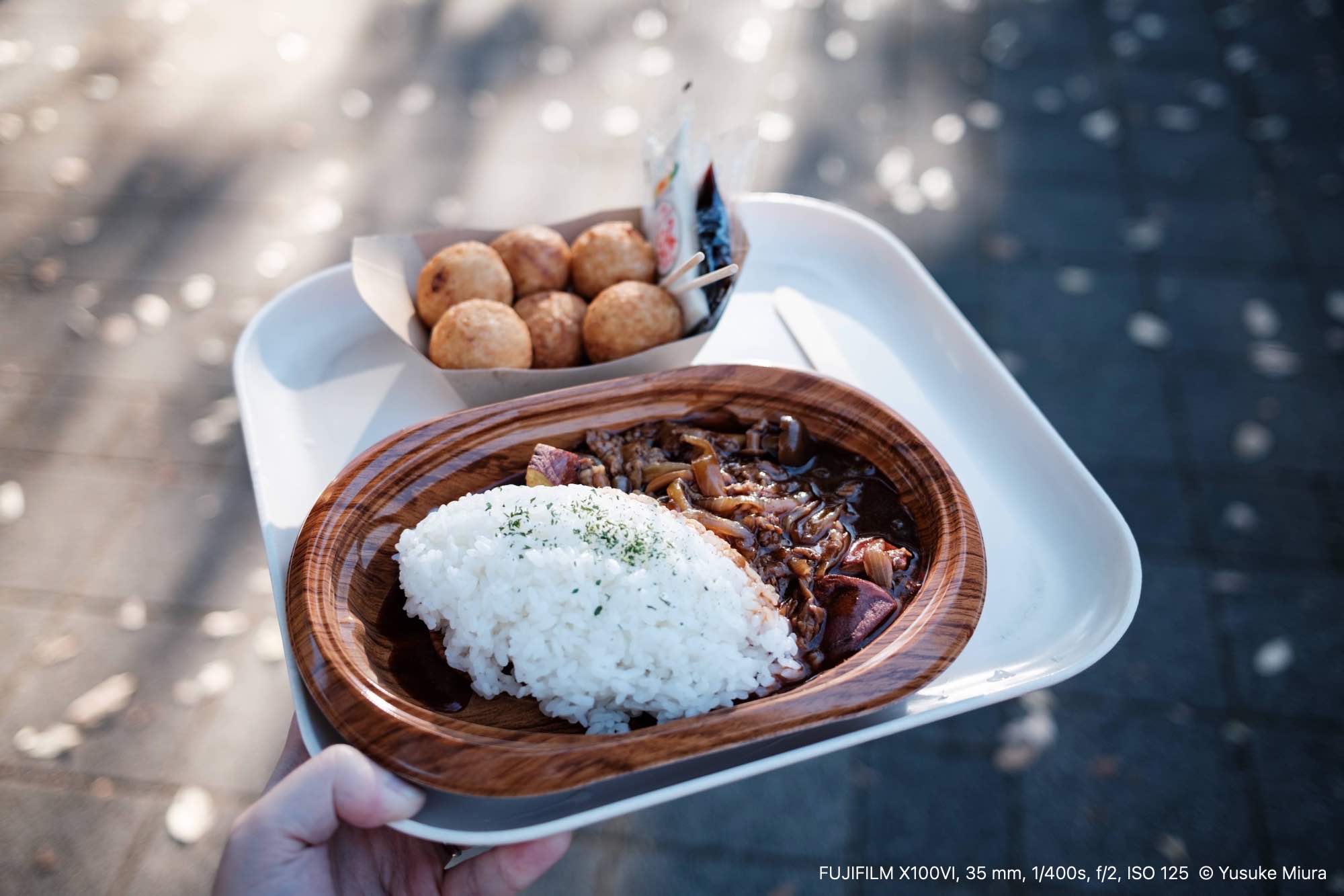 よくあるフードコート形式で、先に注文・会計してから、料理が出てくるのを待ちます。僕はハヤシライス(950円)、妻はたこ焼き(500円)にしました。電子マネー可。