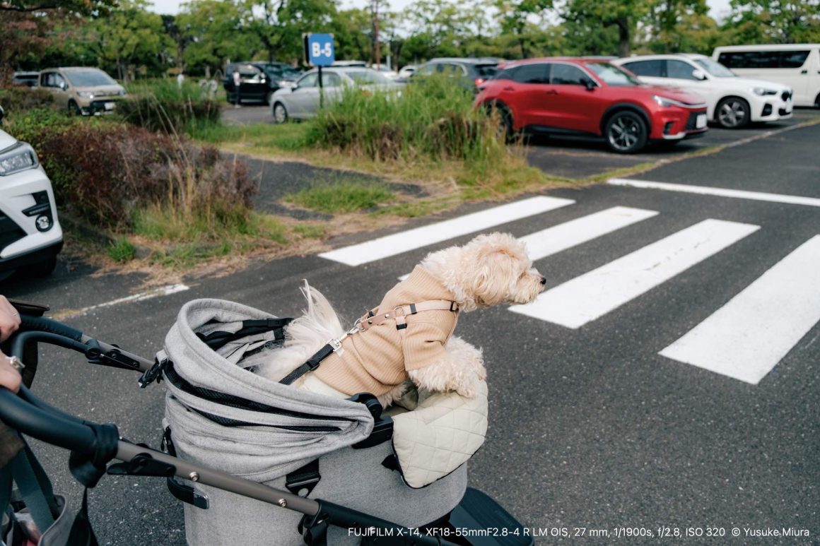 今回も、もちろん犬を連れて訪れました。うちの犬はカートに乗って移動するのが好きだから、途中で歩かせても早くカートに乗せろとせがんでくるくらい。犬って歩くの好きじゃないのか…?