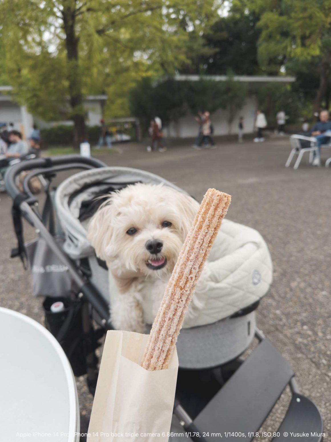 そして妻のチュロスを狙う犬がかわいい。もちろんあげないので、何も貰えないことを悟って落ち込んでいました。