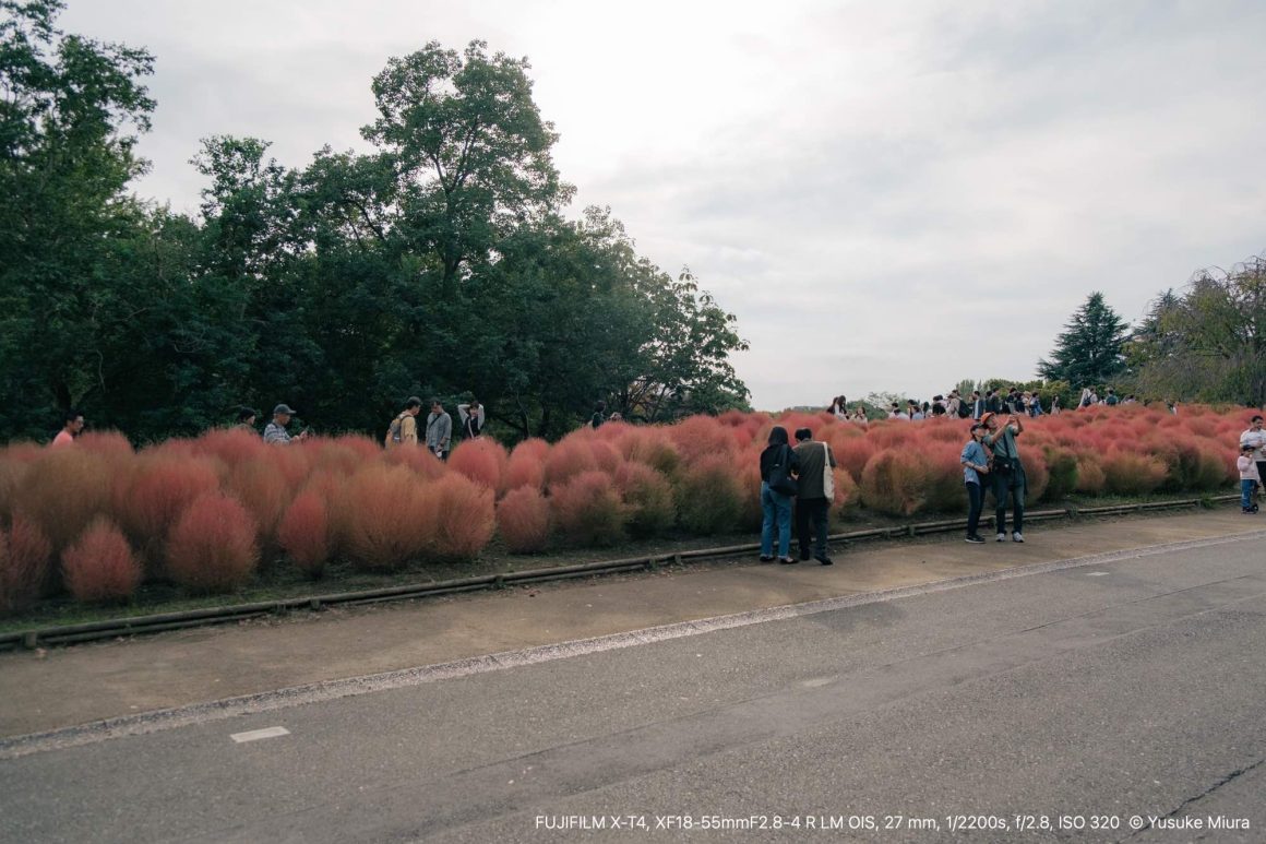 コキアといえば国営ひたち海浜公園なんだけど、この昭和記念公園にも少しだけあります。一面に広がっている景色は見られませんが、犬と一緒に写真を撮るくらいなら全然大丈夫。