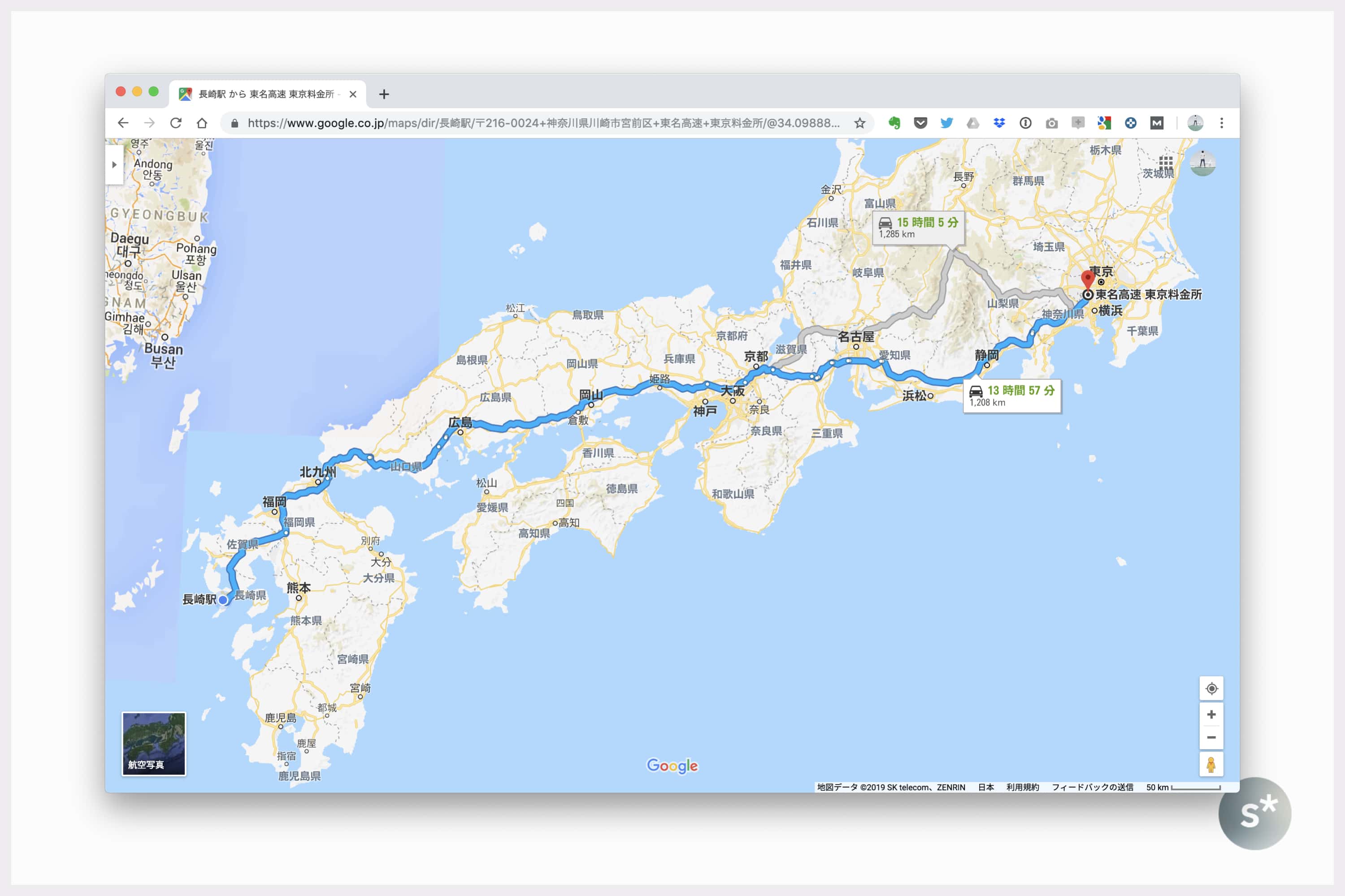 経路は 長崎道→九州道→関門橋→中国道→山陽道→新名神→名神→新名神→東名阪道→伊勢湾岸道→新東名→東名 という感じを想定しています。