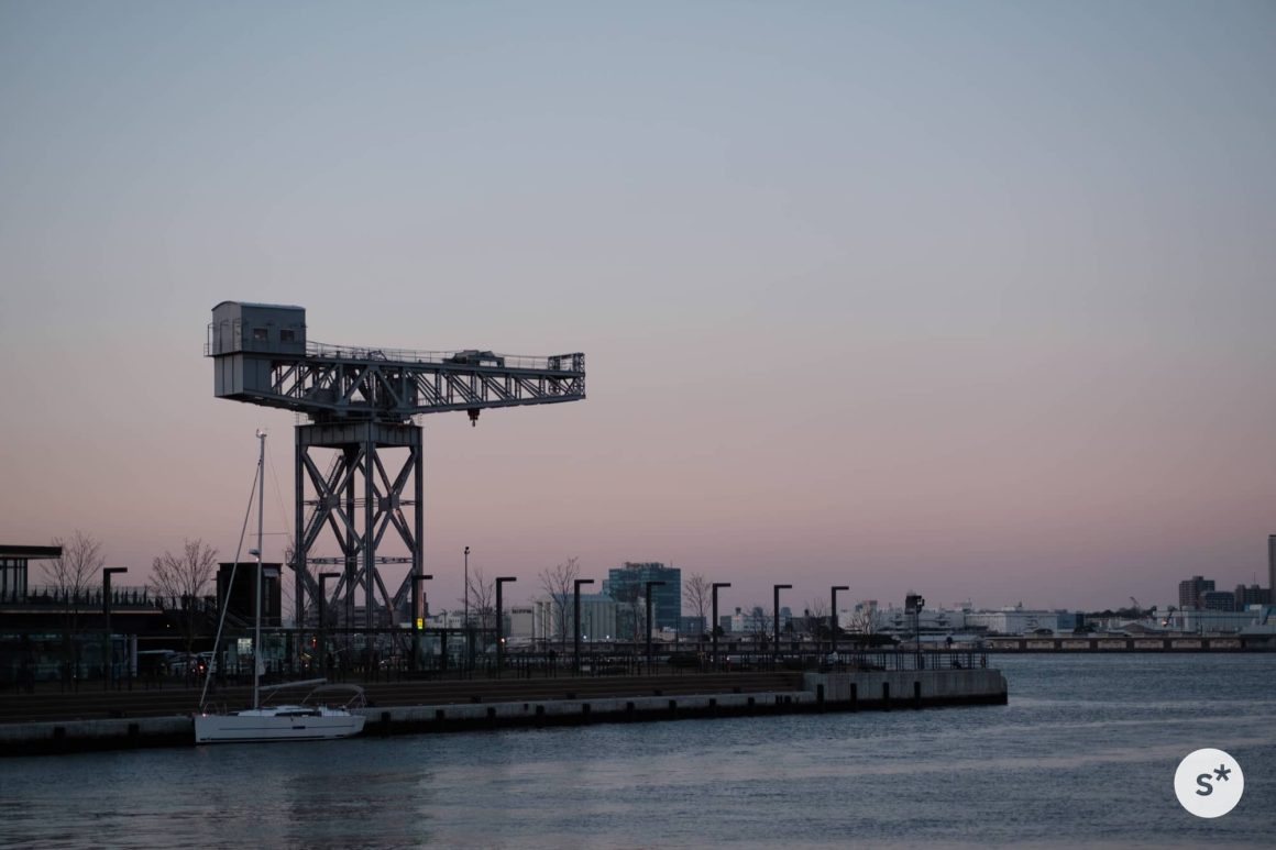 先日、横浜赤レンガ倉庫で開催された「赤レンガでわんさんぽ」に行ってきて、その帰りがちょうど夕暮れのタイミングになりました。ハンマーヘッドの方を見てみると、夕暮れの中に佇むクレーンが幻想的な雰囲気だったので、思わずシャッターを切りました。