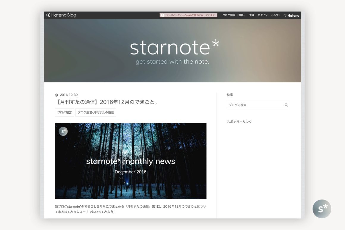 ドメインは starrrrr.com を取得していて、今さら変えるのも気が引けたので、「star○○」という名前で。そして、このブログは自分自身の思考と体験を書き記していくノートブックだと思っていたし、当時「○○note」という響きが好きだったんです。この2つを合わせて「starnote」はどうだろうか? 字面を見たときに、j とか y のように、ベースラインから下に突き出た文字がなくてきれいだし、左右対称のように見える文字の塊もいい。