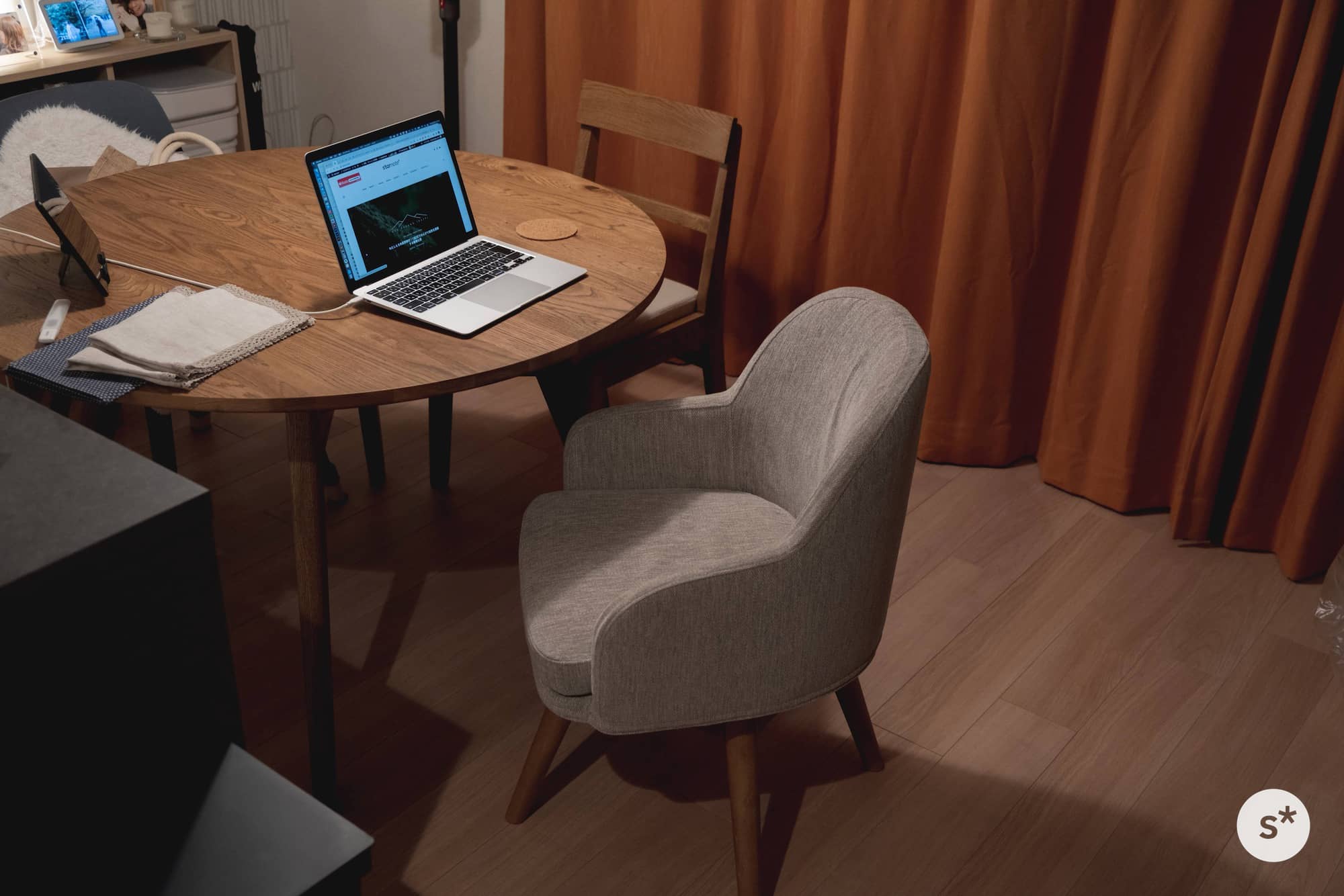 デスクでの作業が煮詰まってきたときは、MacBook Airを持ってダイニングテーブルに行きます。