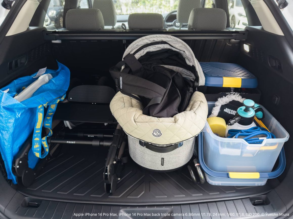 上記の犬用カートを使っていると、カートの車輪で車のラゲッジが汚れてしまうので、以前はブルーシートを敷いていました。とはいえそれでは見た目がよくない。駐車場でトランクを開けたときに結構人の目に触れる部分なので、気になっていたんです。