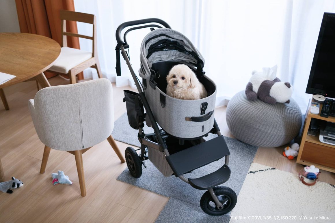 特に犬を連れて外出していると、カートを押したりとか、お世話をするためにしゃがんだりとか、大きなカメラだと邪魔になりやすい状況が多くあります。そういうときでもX100VIならコンパクトなので、邪魔にならずに済むんです。