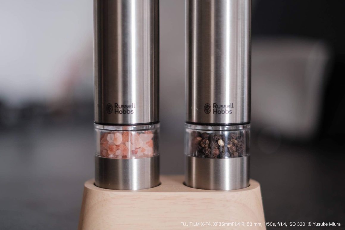 Russell Hobbsのミニサイズが2本セットになったものを買いました。我が家では岩塩とブラックペッパーを入れていて、日常的に使っています。これまで手回し式のミルを使っていたので、電動になってかなり便利になりました。