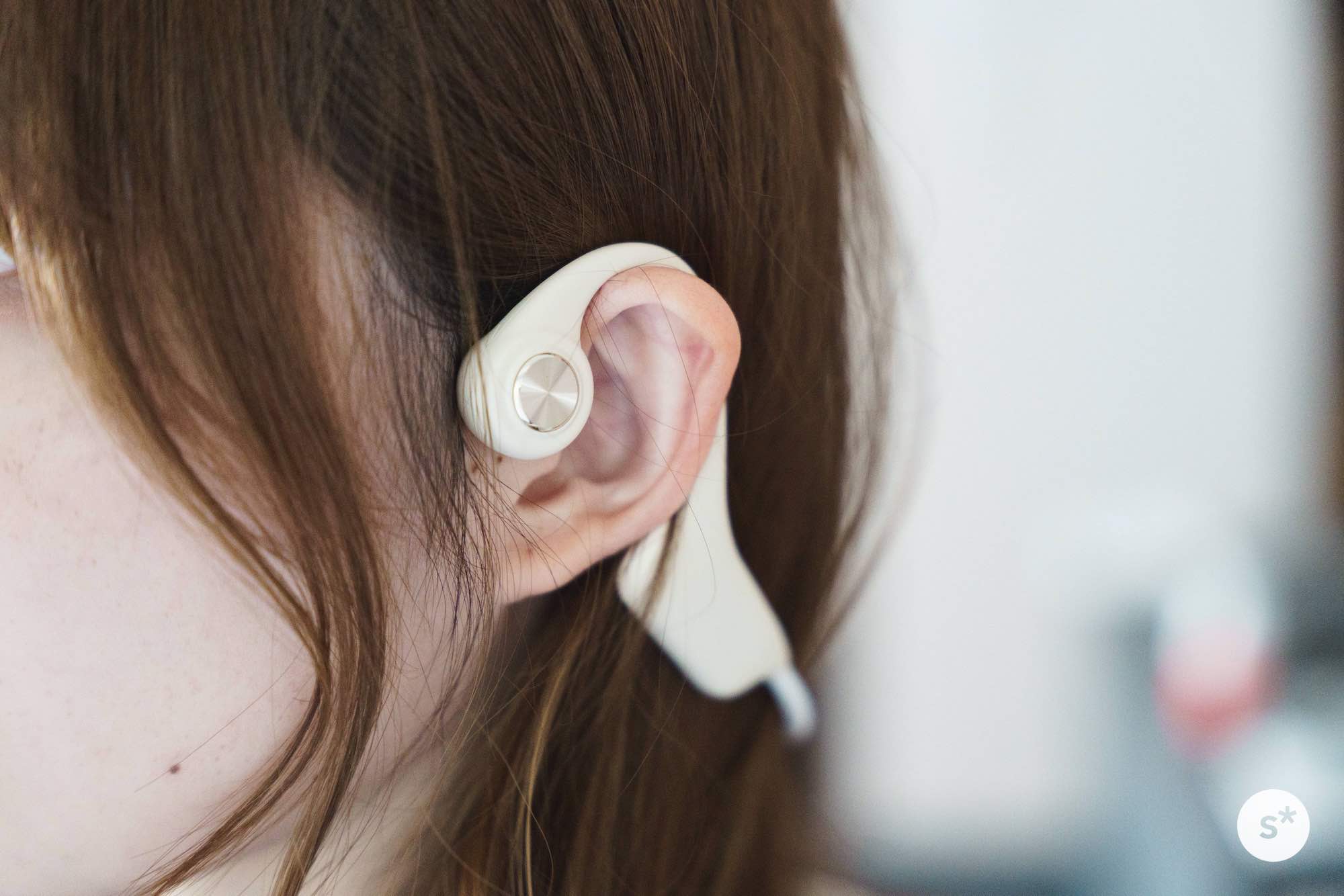 耳を塞がないから、周囲の音が遮断されることがない。お風呂上がりであっても耳の中が蒸れることがない。耳は耳としてその機能を維持したまま、耳に付加する形でイヤホンを使えます。これこそが最大のメリット。