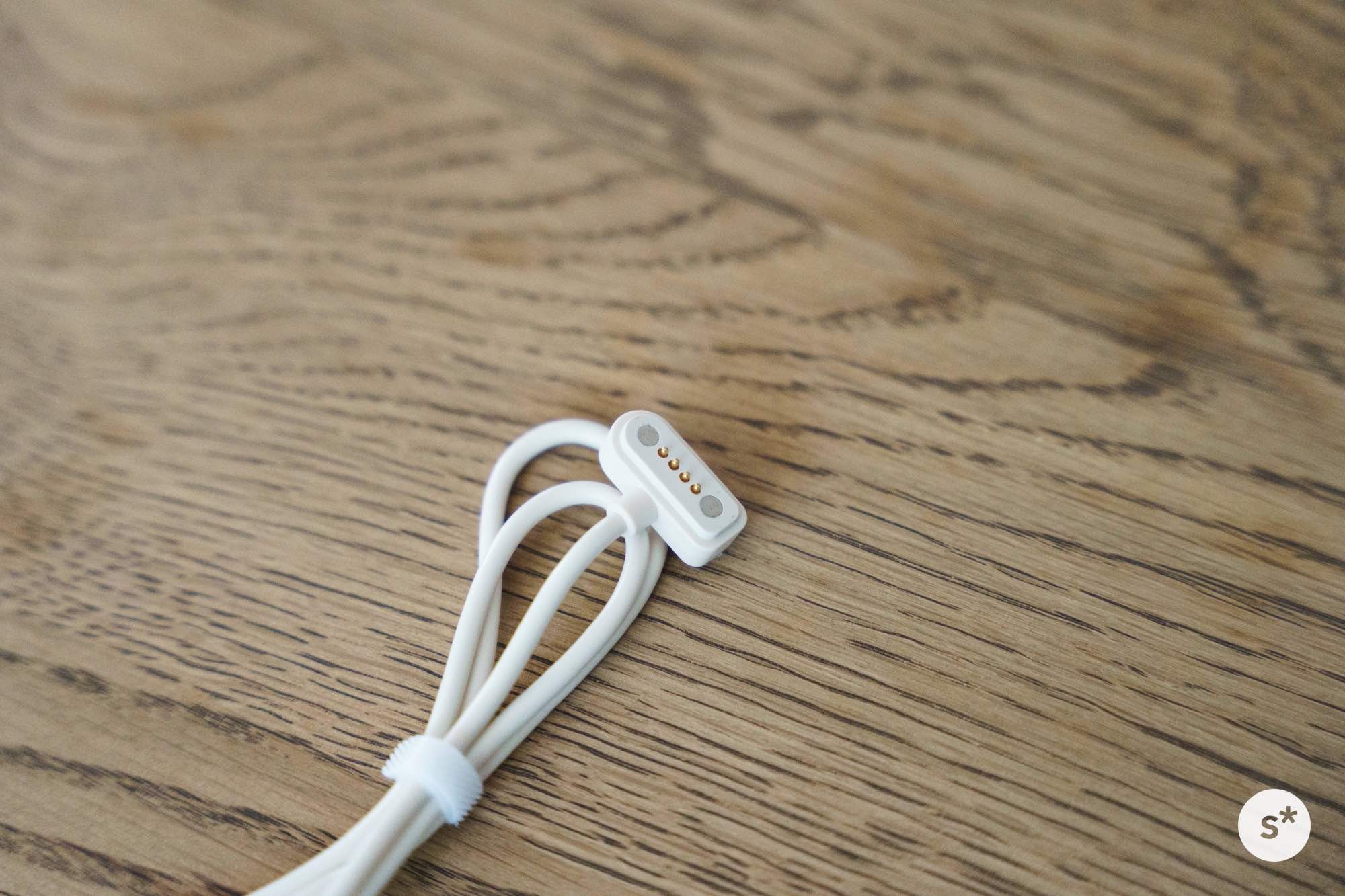 そして、充電は専用のマグネット端子から行います。ケーブルを紛失したら充電できなくなるので、あまり歓迎したくないものですね…