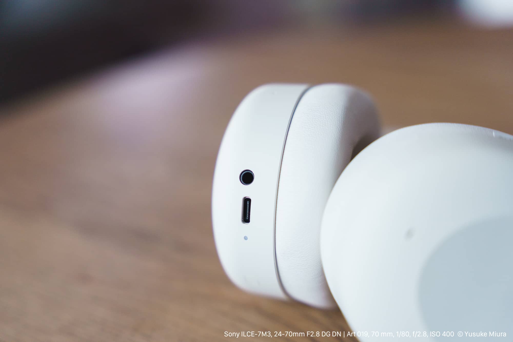 充電は右側のハウジングにあるUSB-C端子で行います。もちろん付属のケーブルだけでなく、汎用的なUSB-Cケーブルでも充電可能。