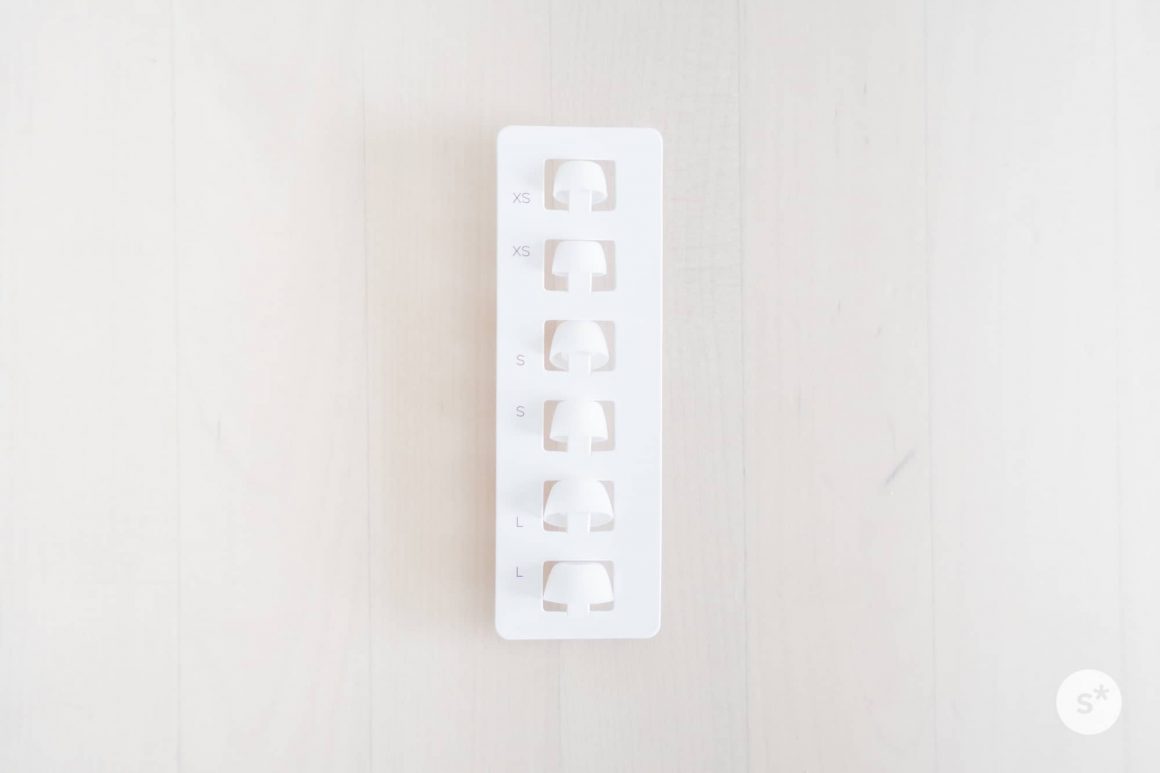 イヤーチップはXS、S、M、Lの4サイズが入っています。Mサイズは最初から本体に装着されているので、箱の中にはそれ以外のサイズが入っています。また、クリーニング用のクロスもイヤーチップの箱の中に入っていました。