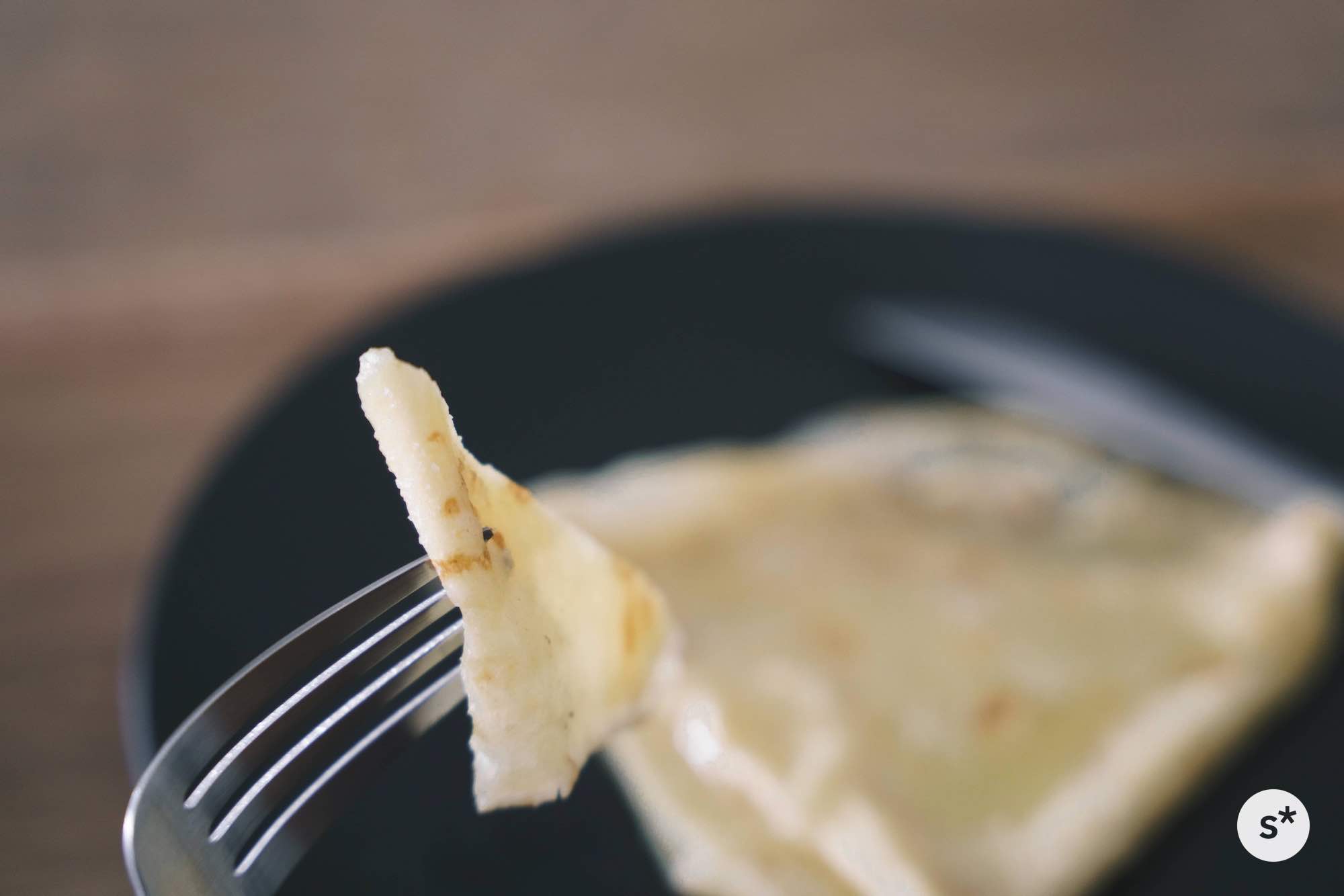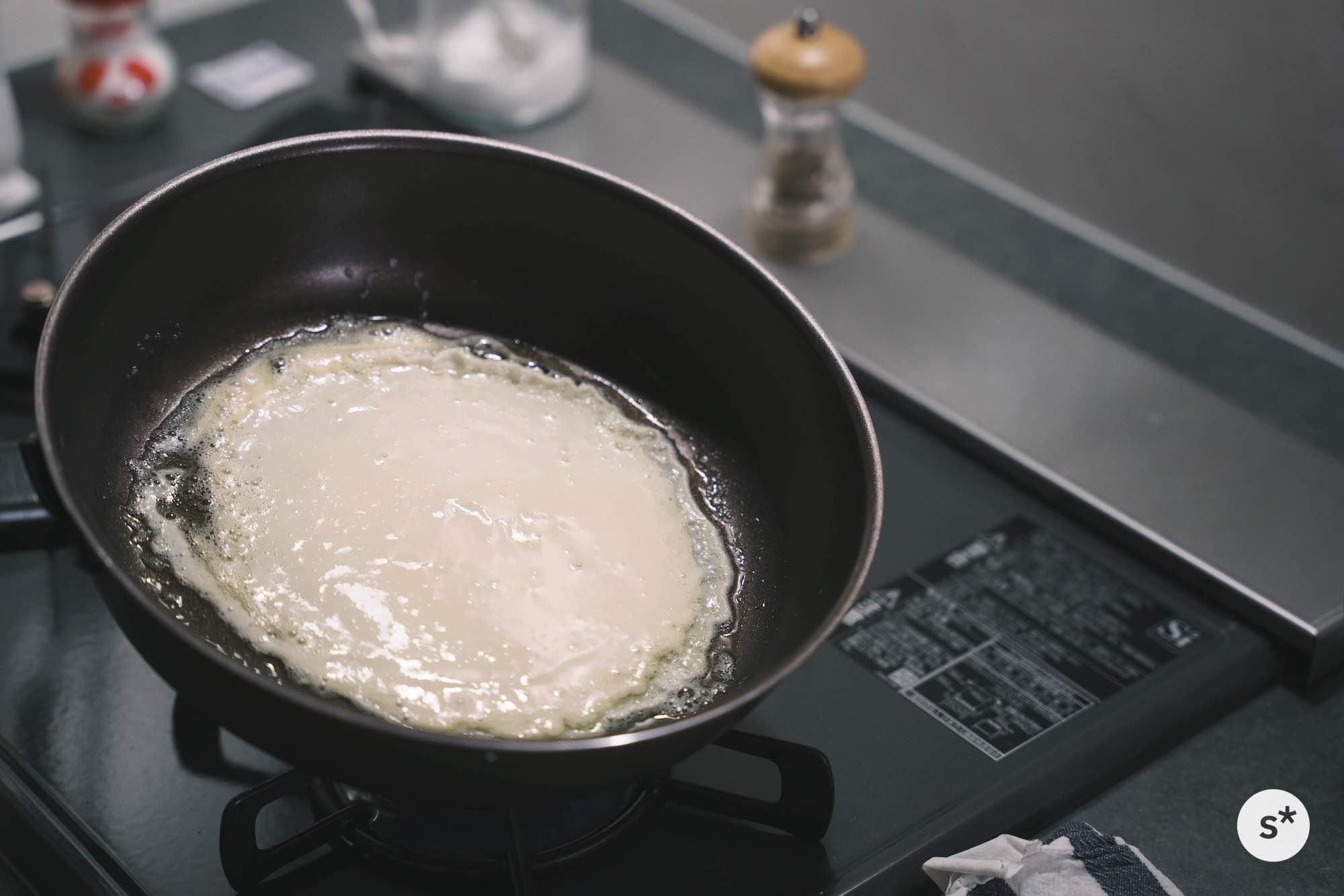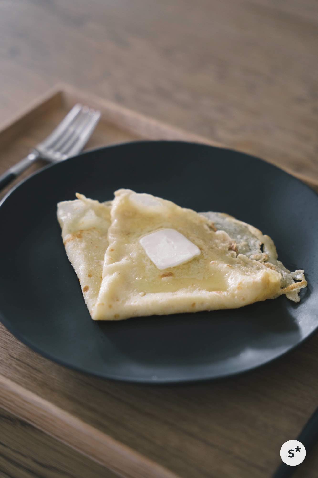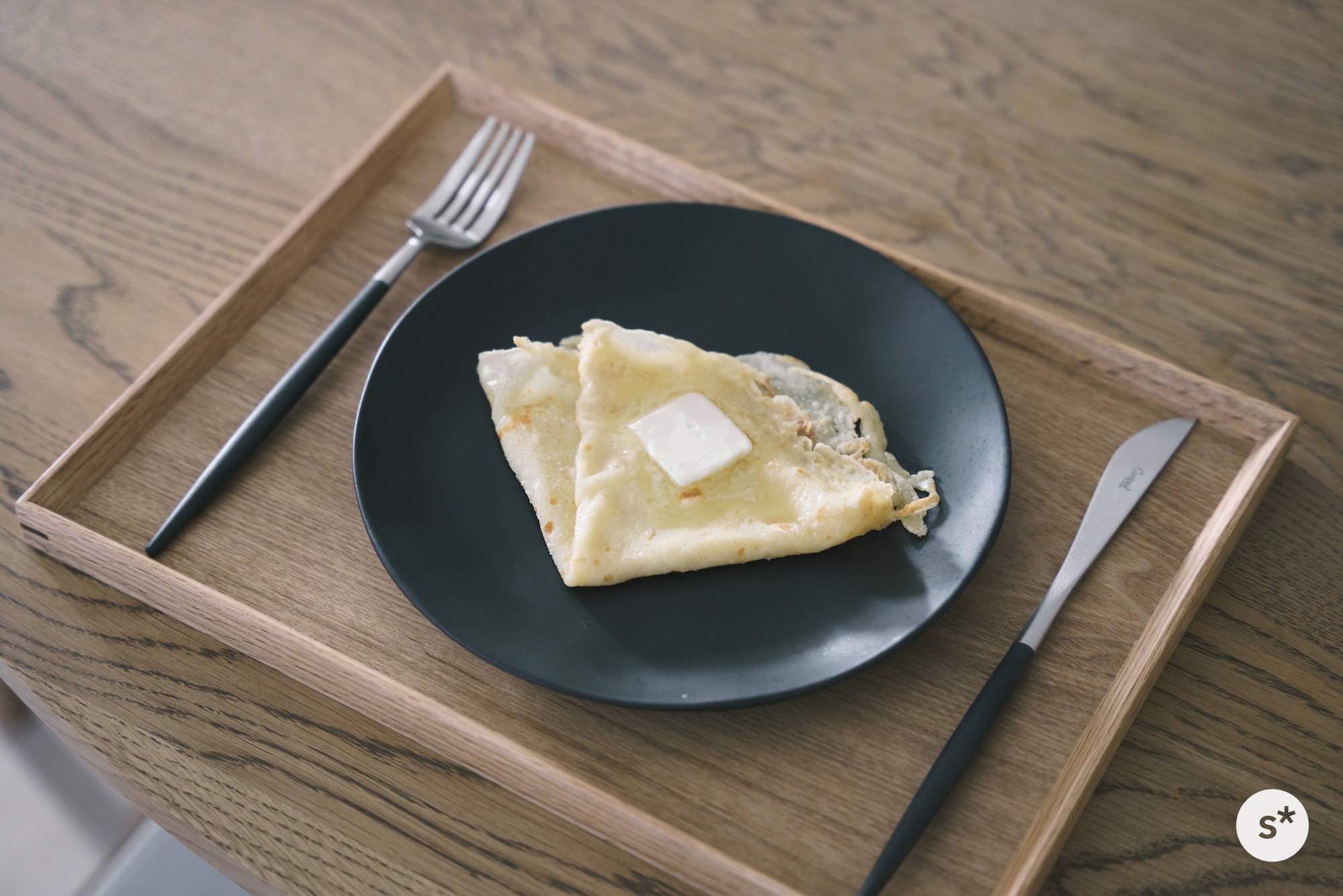 まずはシンプルにバターシュガークレープに挑戦してみます。生地を焼いてお砂糖とバターだけでいただくシンプルなものです。
