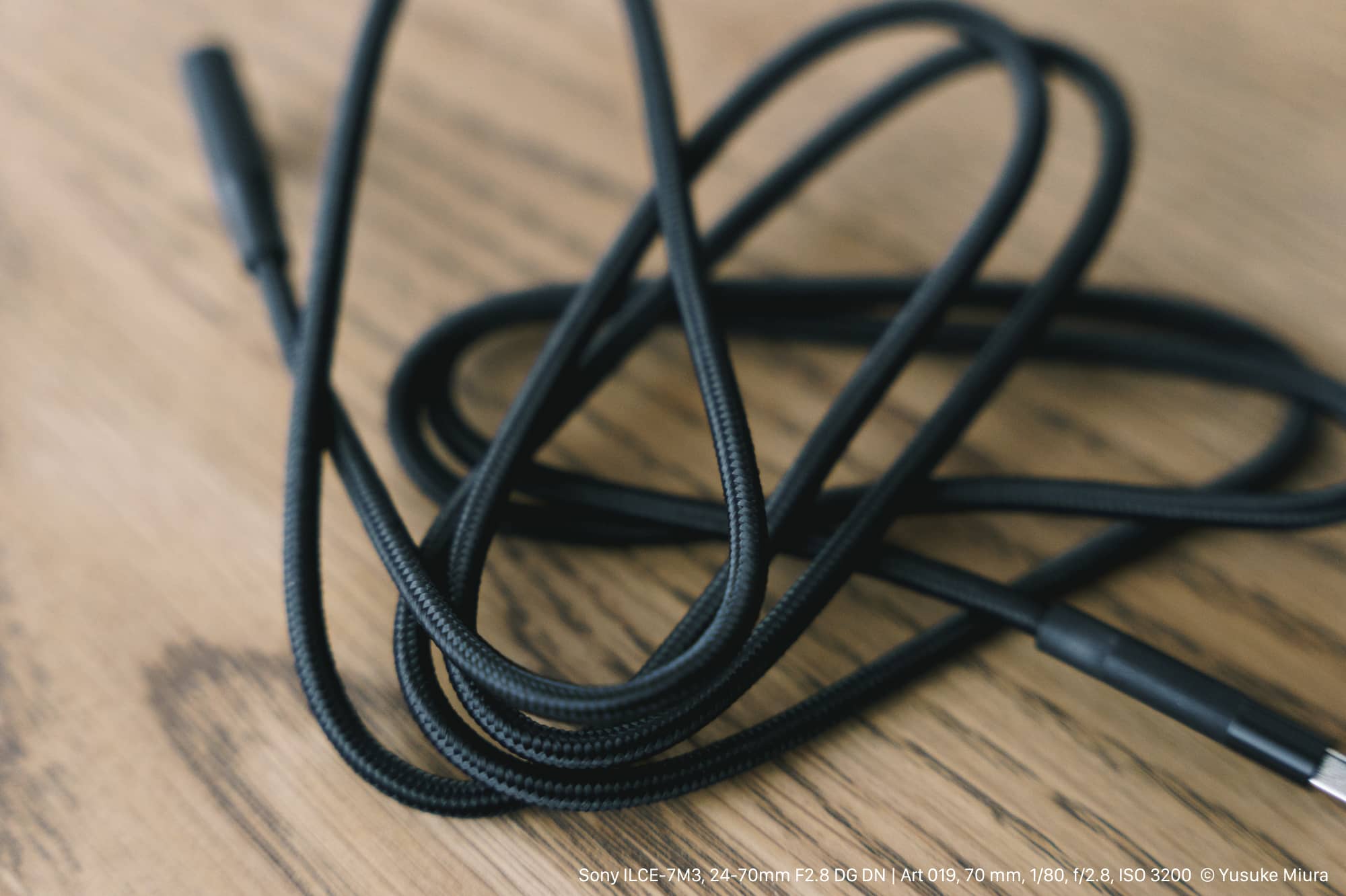 付属のケーブルは編み込み式で高品質なものです。TourBox Lite側はL字のUSB Type-C端子で、PC側はUSB Type-Aとなっています。ここはType-Cでもよかったかもしれませんね。