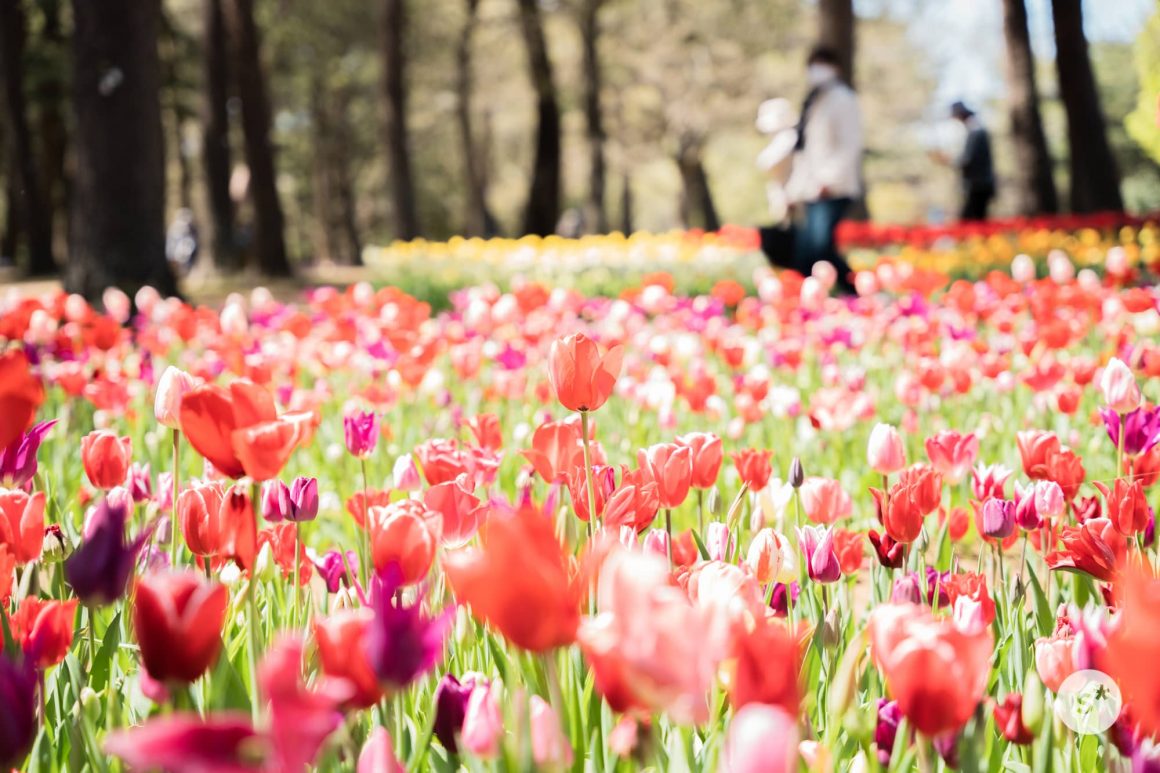 また、本当はネモフィラだけを目的に訪れたのですが、チューリップ畑が想像以上にカラフルで印象的でした。様々な種類のチューリップが植えられていて、観察するのが楽しくて、もしかするとネモフィラよりも長い時間見ていたかもしれません。
