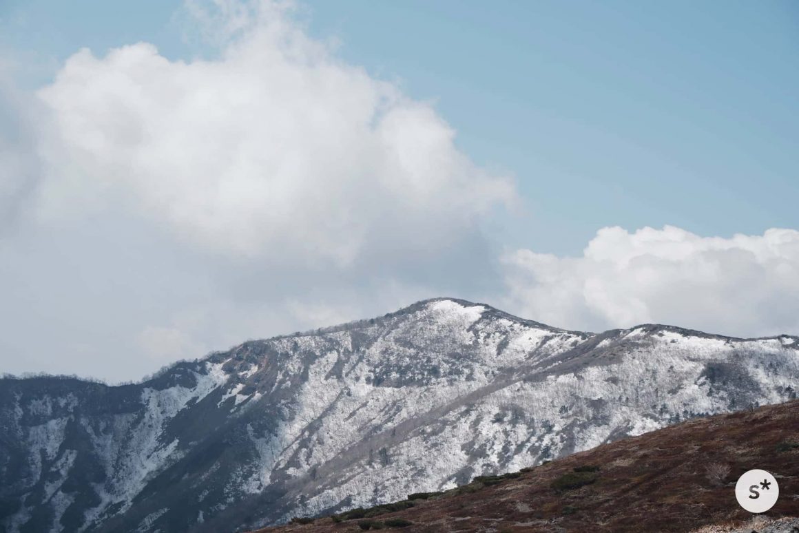 でも、1日目の夕方に近くまで行ってみると心に残りそうな景色が広がっていたので、2日目の朝一で乗ってみることに。ものの4分足らずで那須岳の9合目(1,682m)にワープすることができ、岩と雪が共存しているという見たことのない光景が広がっていました。本当に行ってよかったです。寒かったけどね。