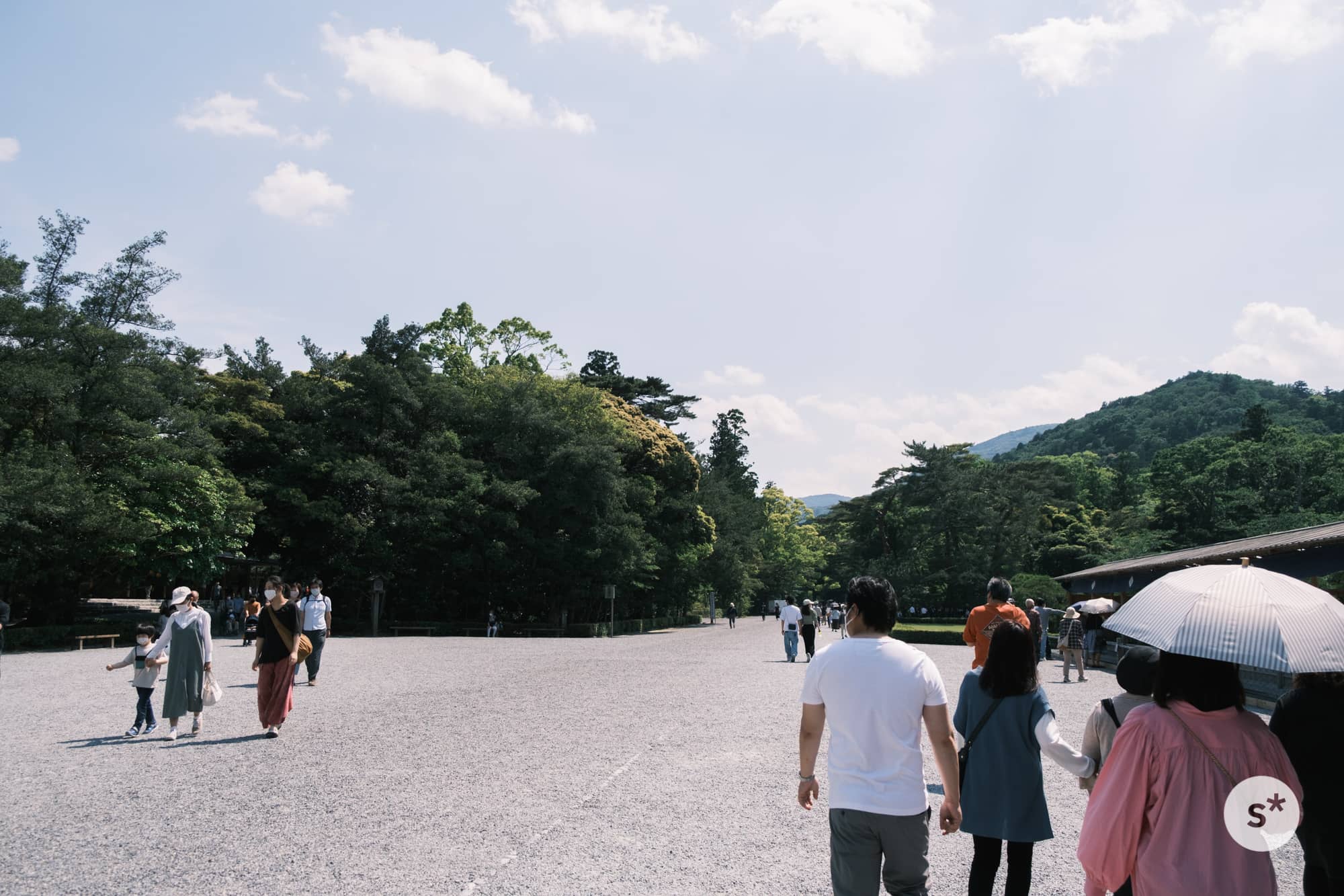 駐車場(こちらは有料です)に車を止め、散策を始めます。ここから内宮の正宮までは2kmくらいあるので、たくさん歩くことになりますね。