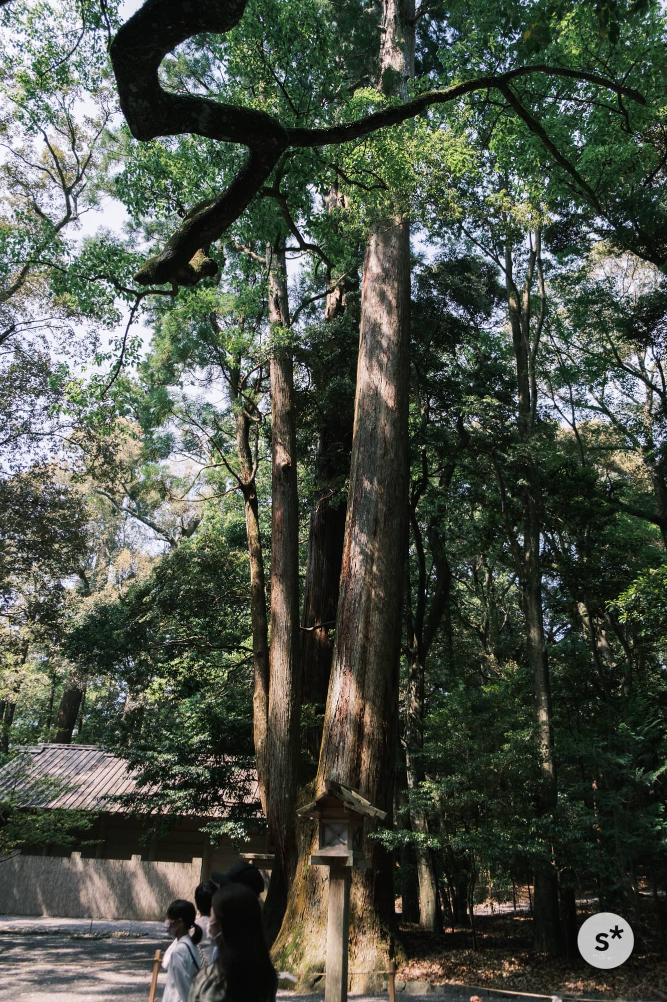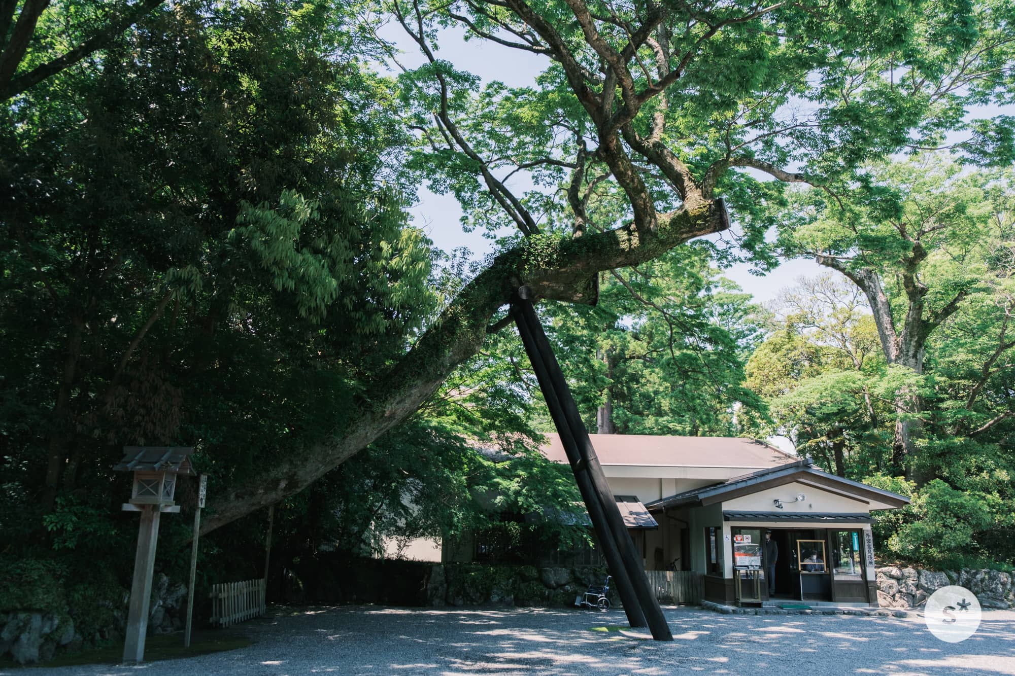 正宮の正面には大きな杉の木が斜めに立っています。写真が傾いているのではなくて、木が斜めなんです。