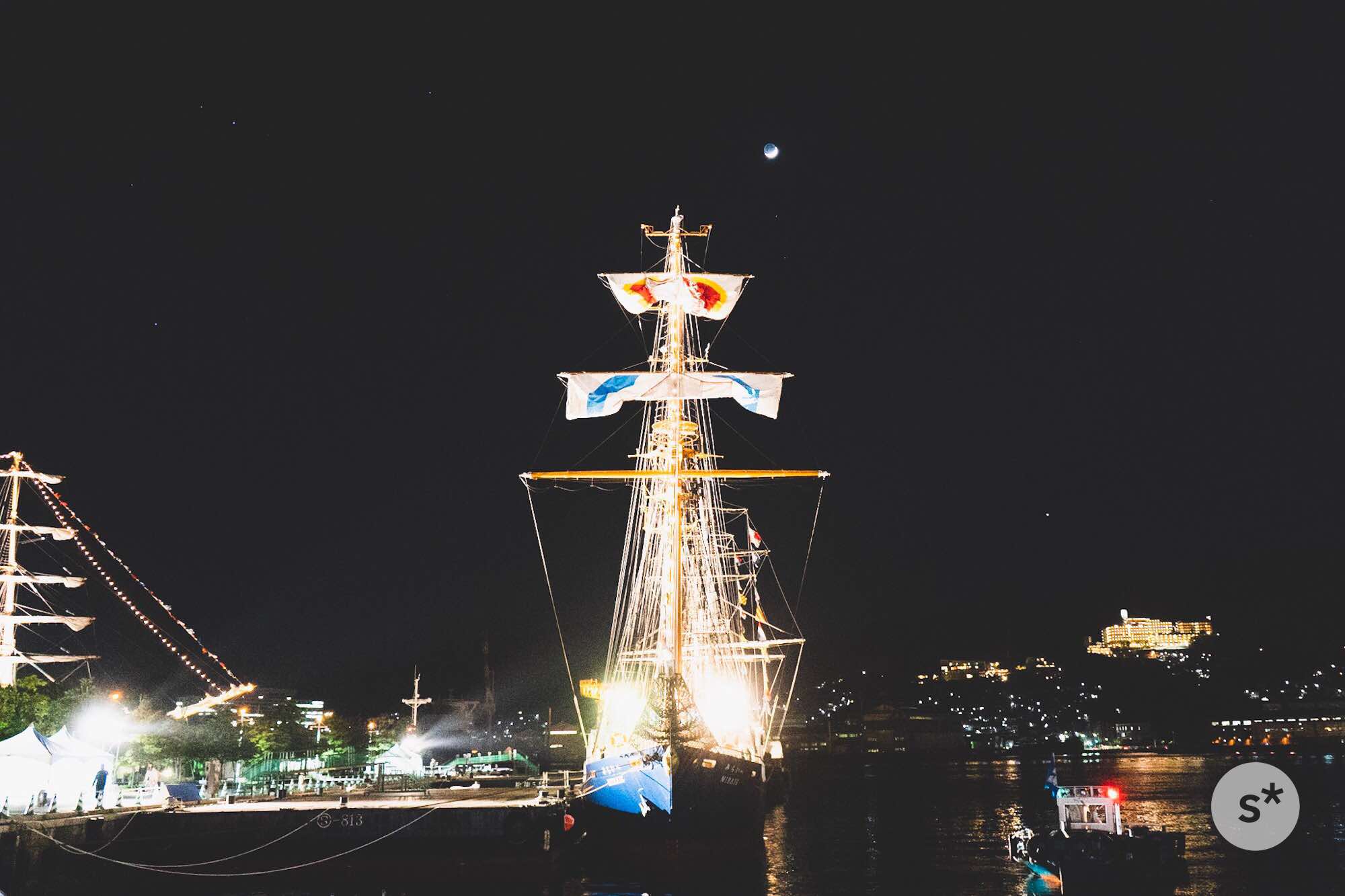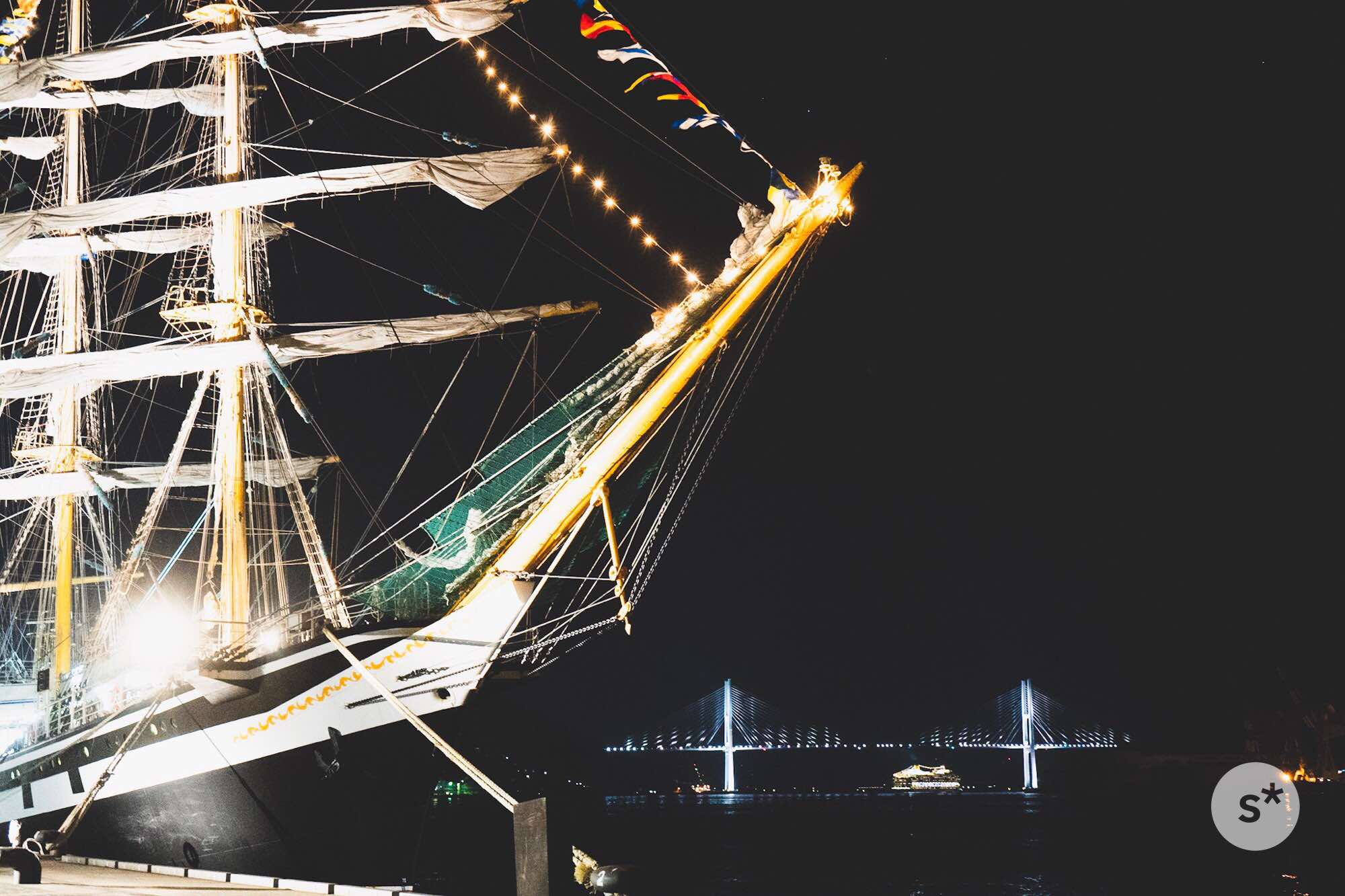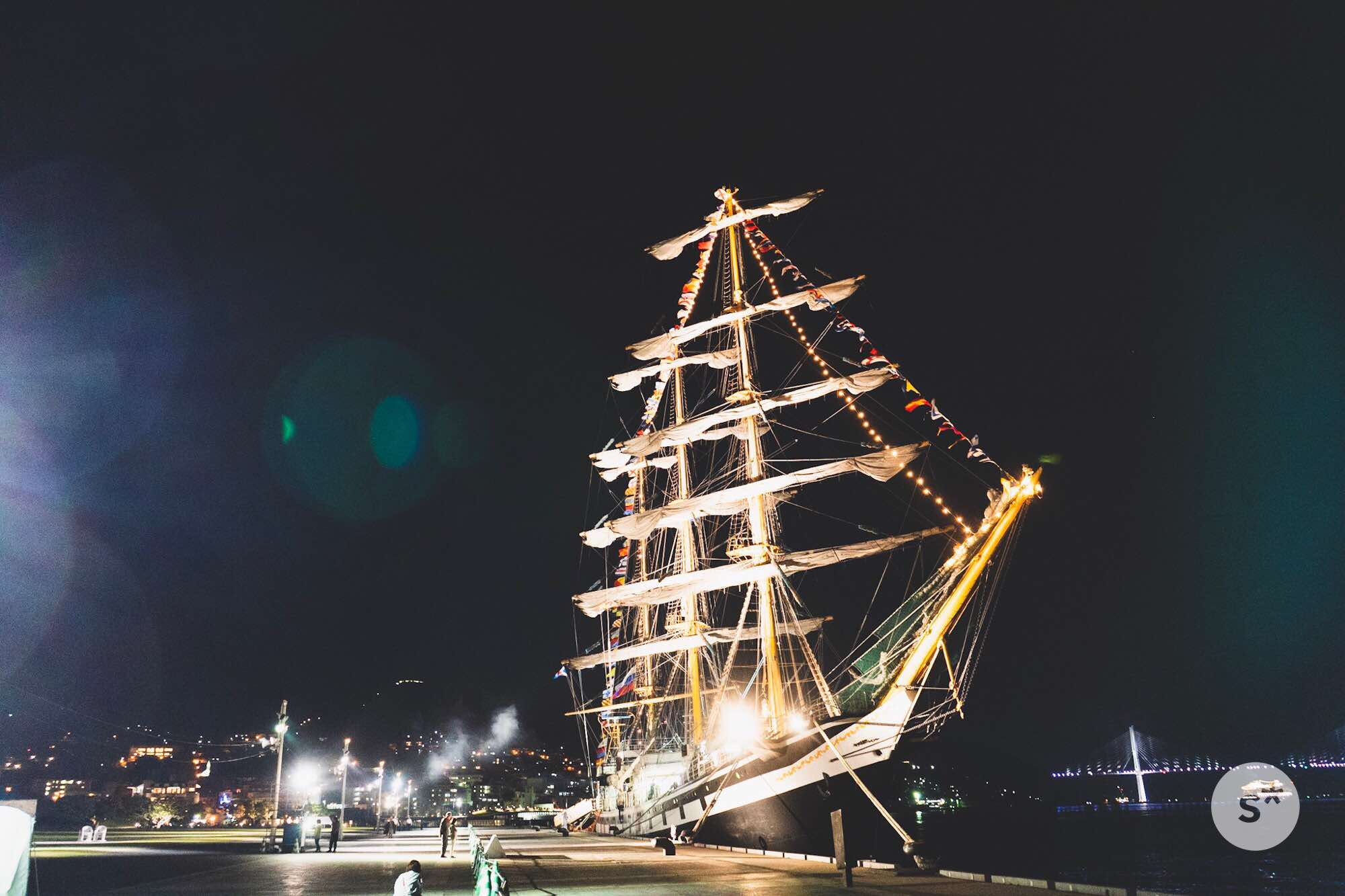 ロシアの帆船「パラダ」。光がこちらを向いていたのでフレアを入れてみました。