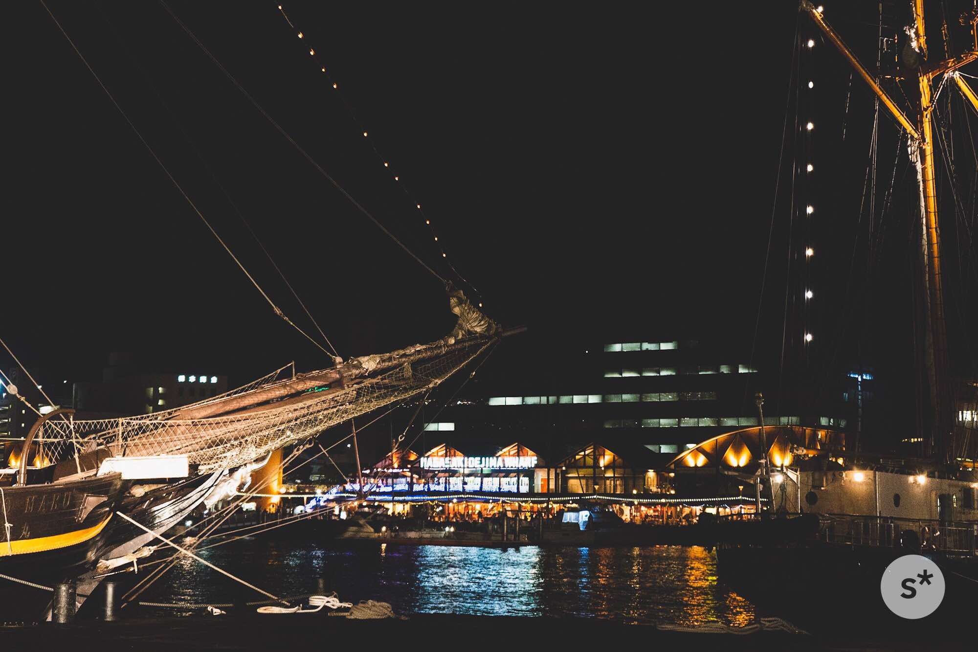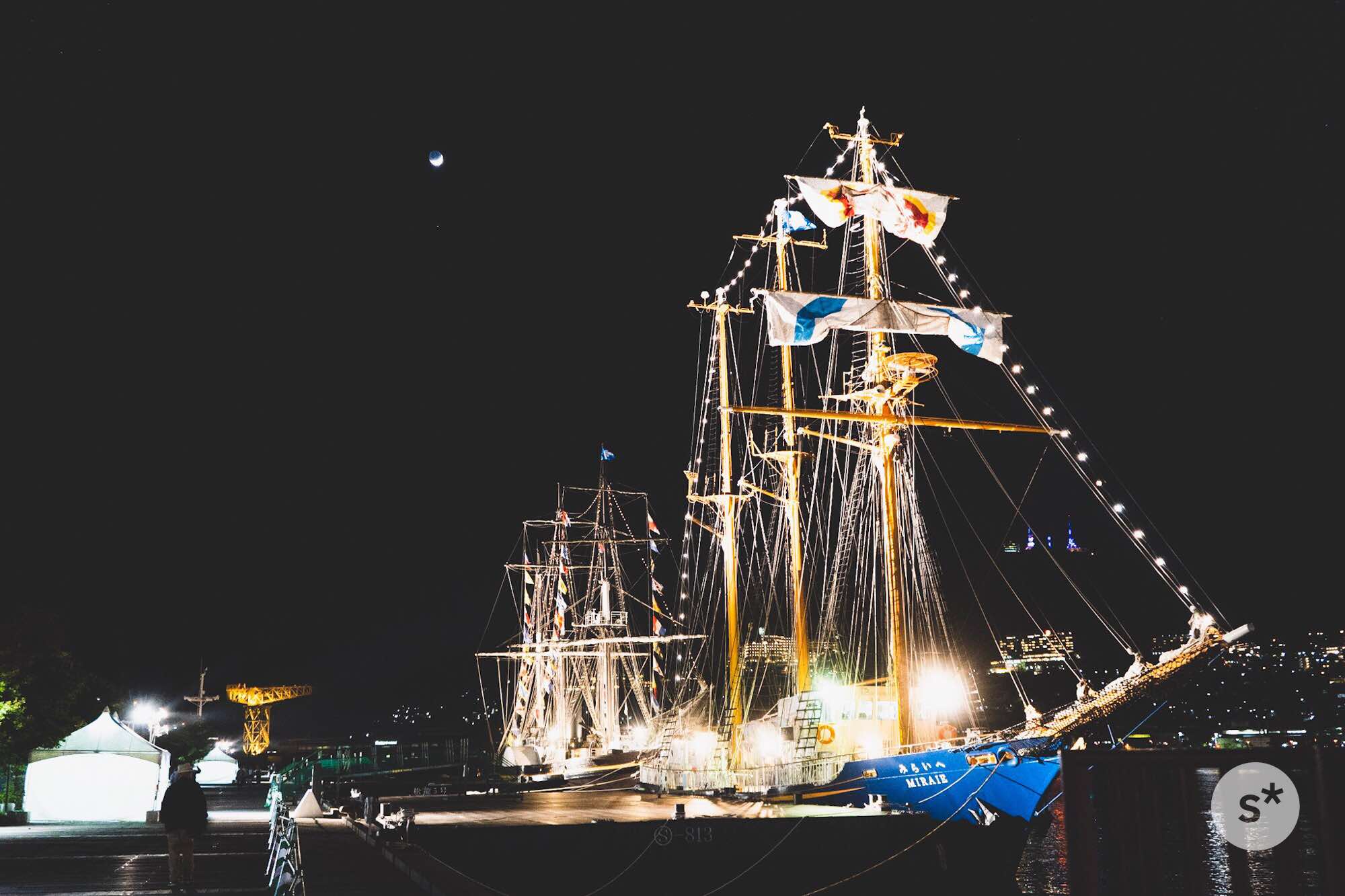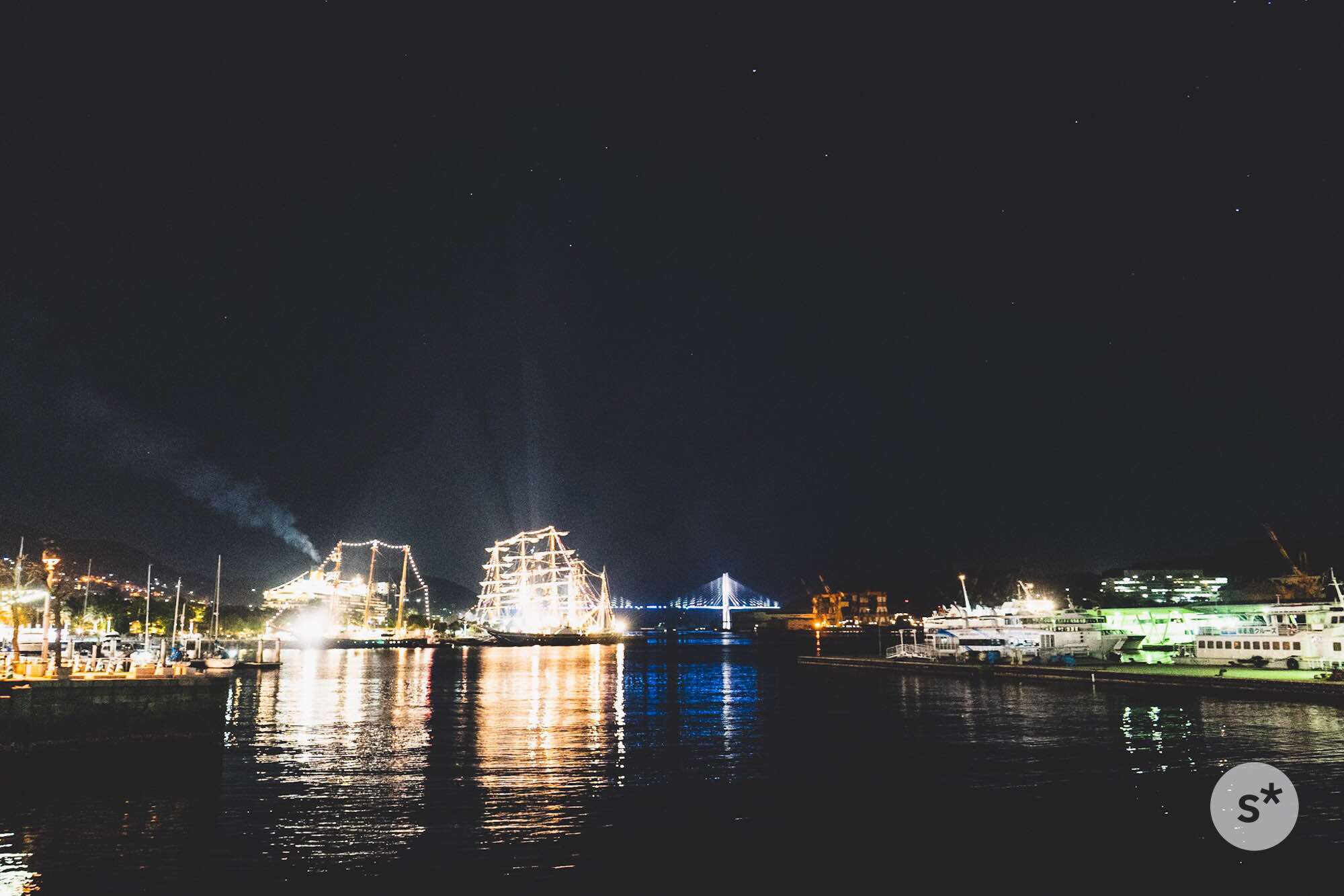 ロシアの帆船「パラダ」。光がこちらを向いていたのでフレアを入れてみました。