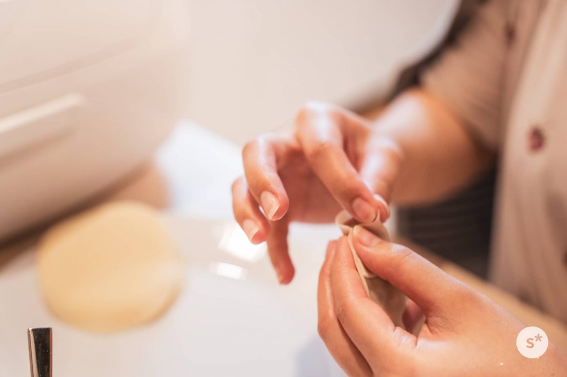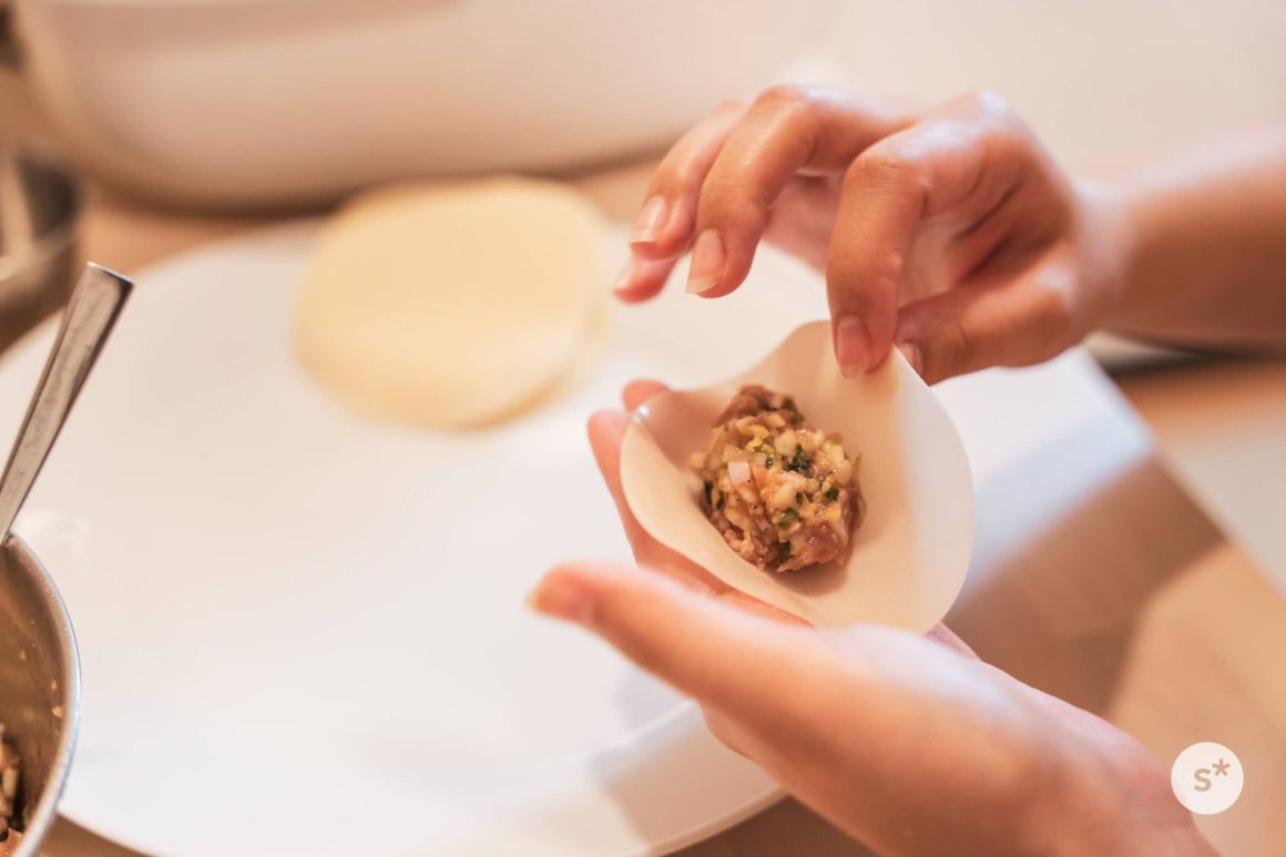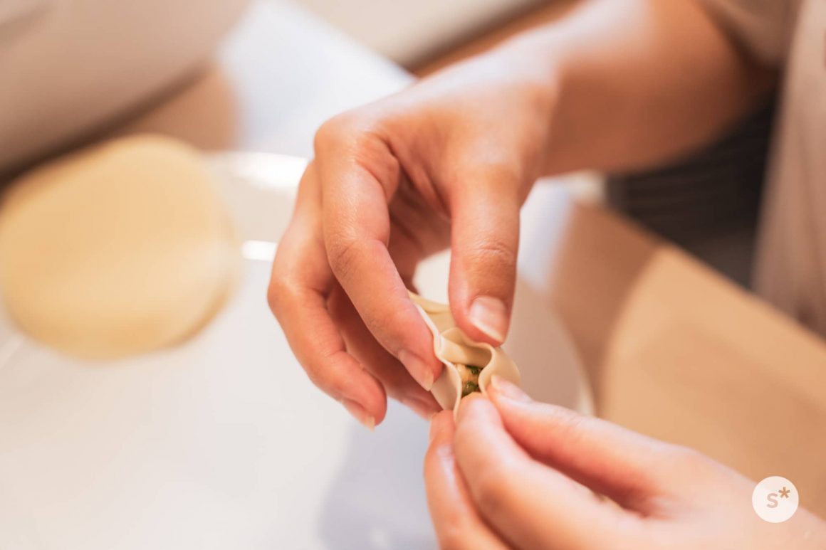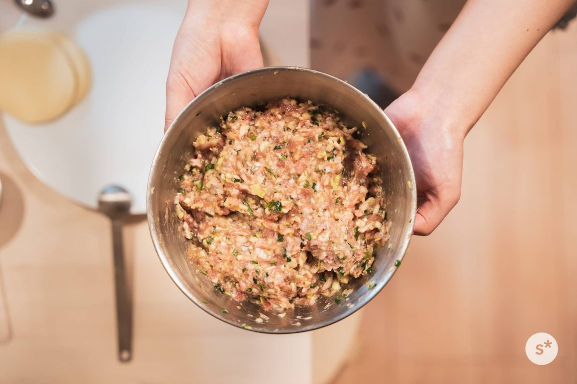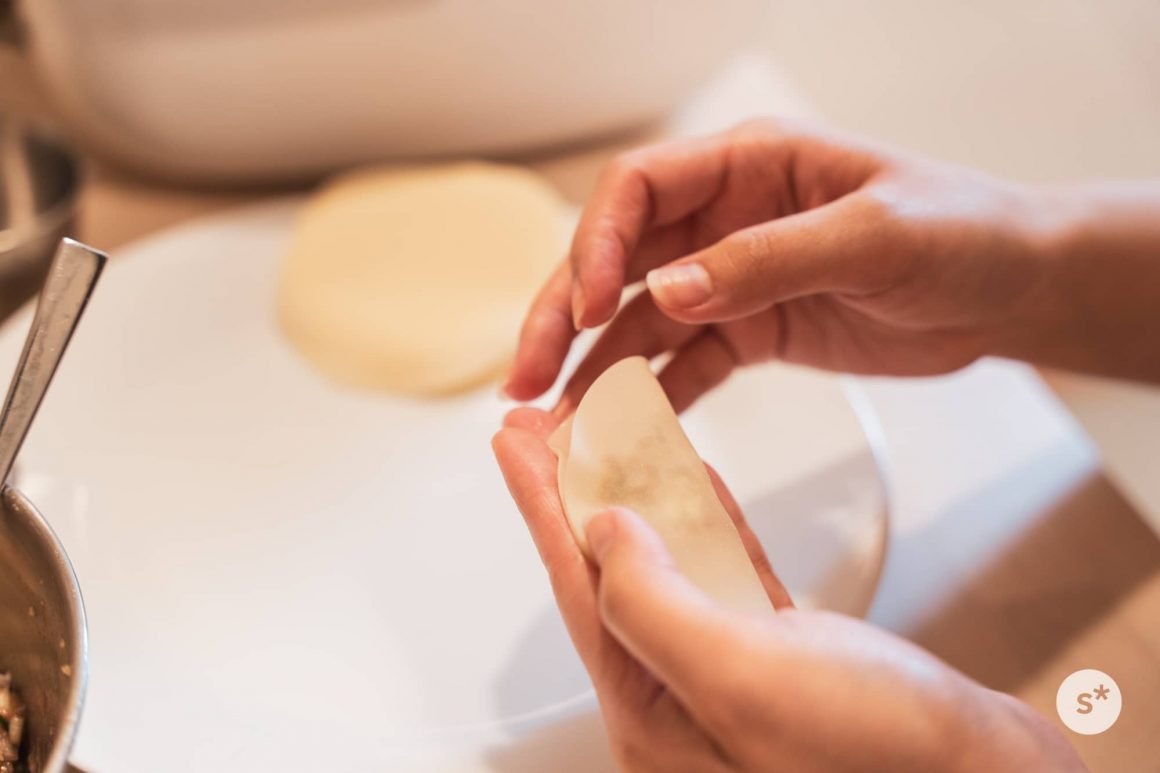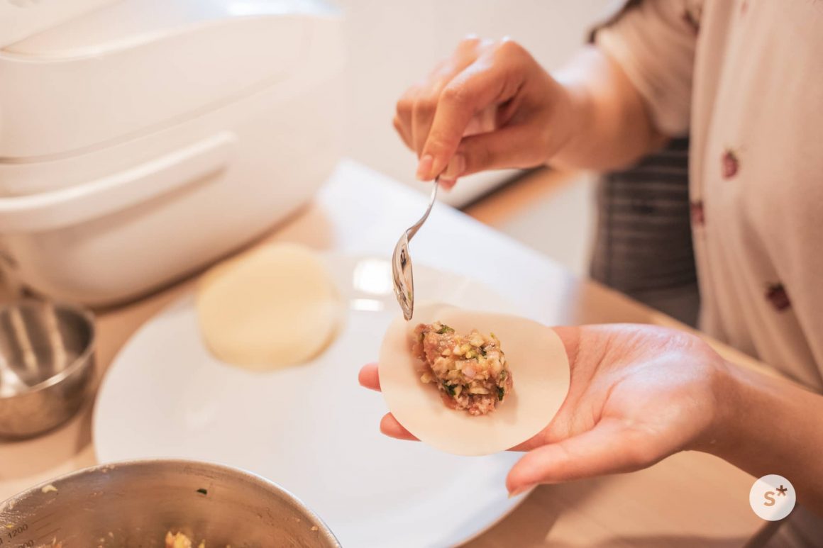 そうこうしている間に種が出来上がった。僕は写真を撮りながら見守っていたけど、皮に包む作業はふたりで楽しく作業できるから、申し訳ない気持ちにならなくていい。