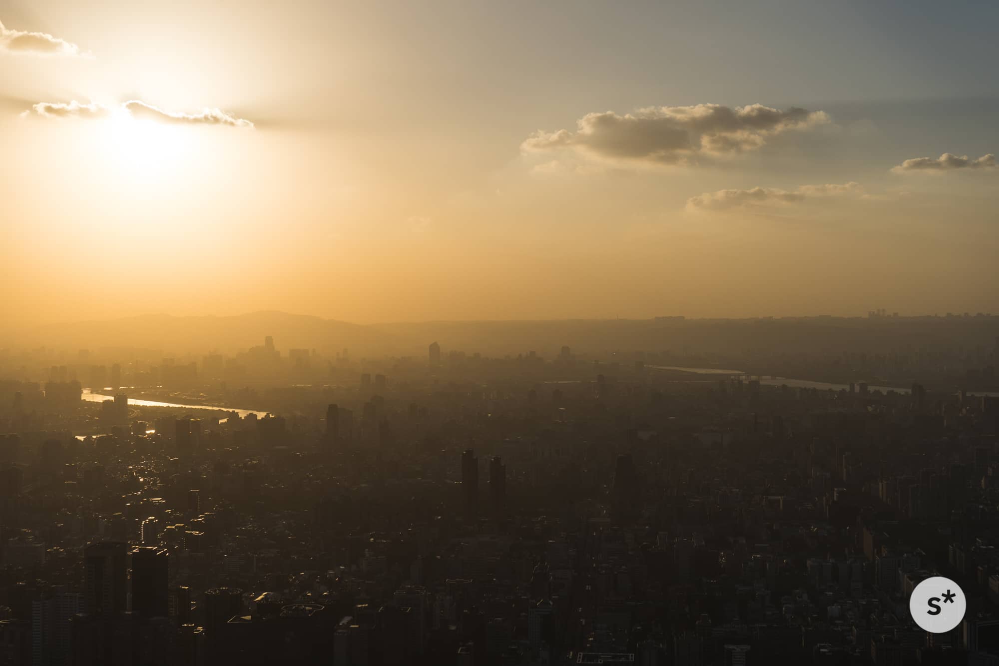 台北の街がステージで、太陽がスポットライトで、台北101の展望台は観客席。