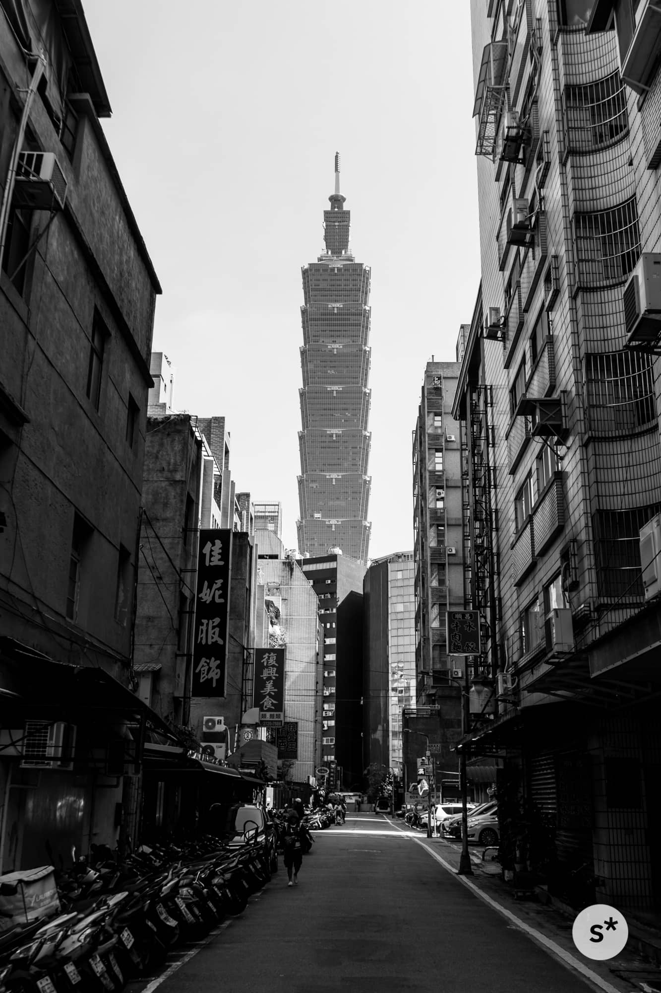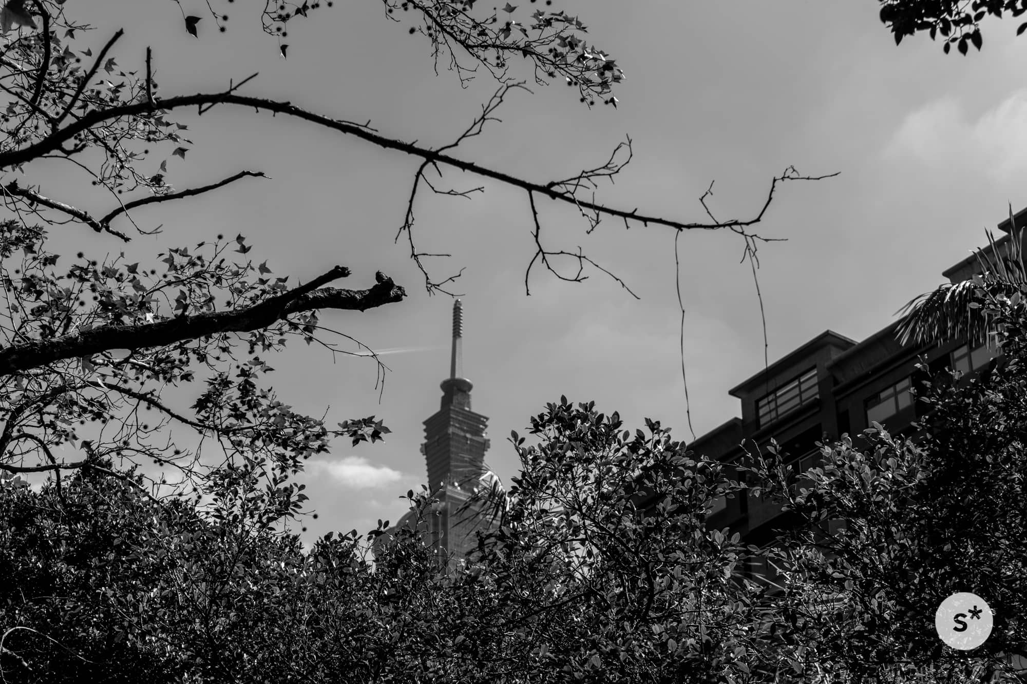 近くまで来ると、ビルの後ろに、路地の先に、あらゆるところから顔を覗かせる「台北101」。