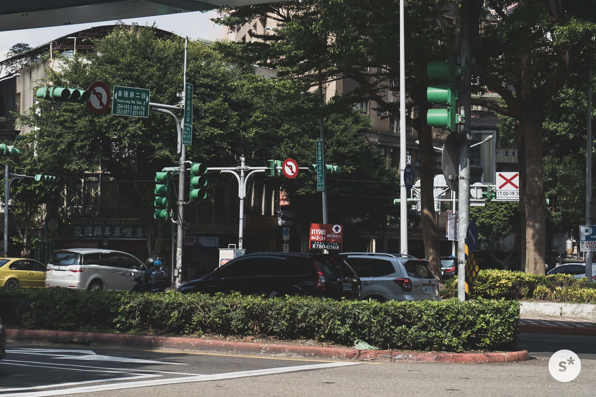 信号待ち。台湾には二輪車専用のスペースがあるんだ。